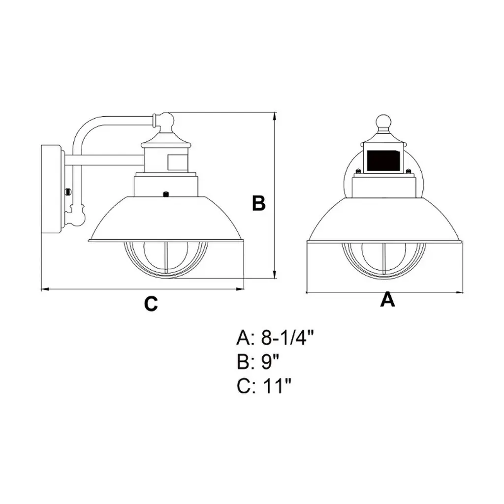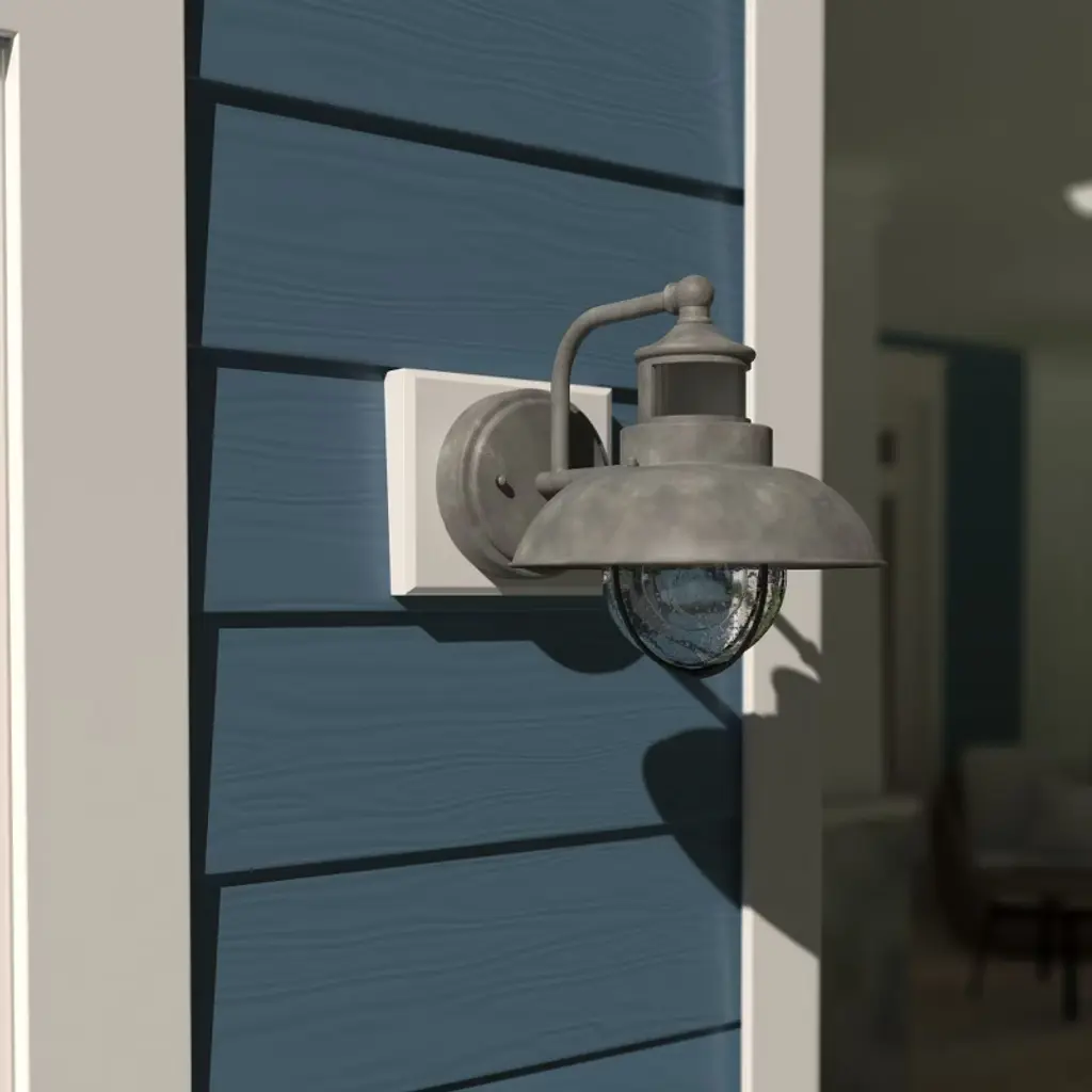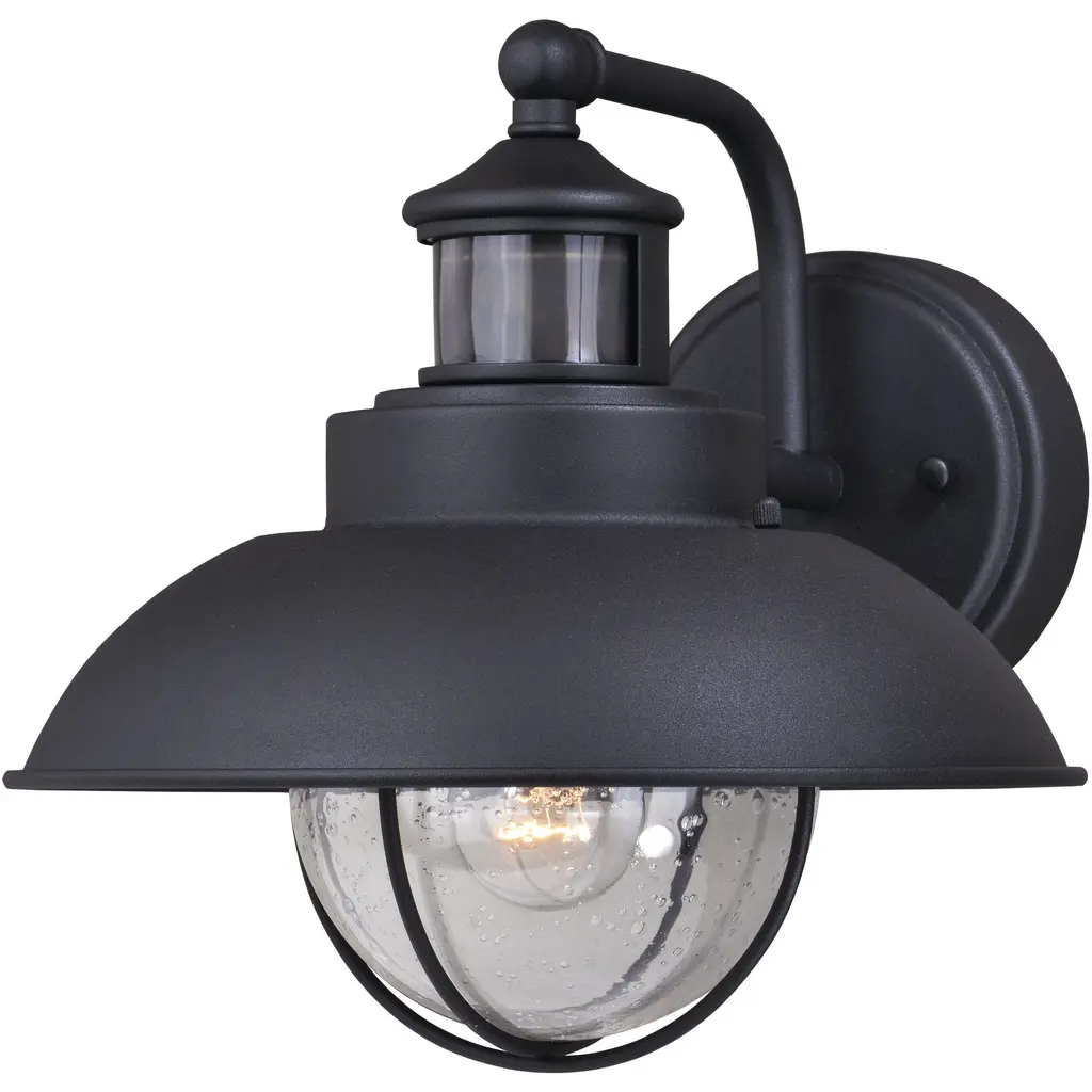 Collection: Harwich, Material: Steel, Finish Color: Textured Black, Width: 6", Height: 10.5", Depth: 7.25", Height From Outlet Box: 4", Backplate Width: 4.5", Backplate Length: 6", Lamping Type: Incandescent, Number Of Bulbs: 1, Wattage: 60 Watts, Moisture Rating: Wet Rated, Desc: An iconic nautical-style design, the Harwich collection will bring a coastal New England feel to your home's exterior. Dualux dual-level outdoor security lighting is designed to fit your lifestyle and enhance the beauty, safety, and usability of your home's exterior areas. Enjoy the comfort and convenience of continuous bright illumination during the early evening hours with automatic dimming late at night to provide soft, ambient illumination until dawn. Rest assured knowing that whenever motion is detected, on-demand bright illumination will be triggered to keep your property safe and secure. This fixture works with any dimmable incandescent or halogen bulb and many dimmable LED bulb models. You get conven