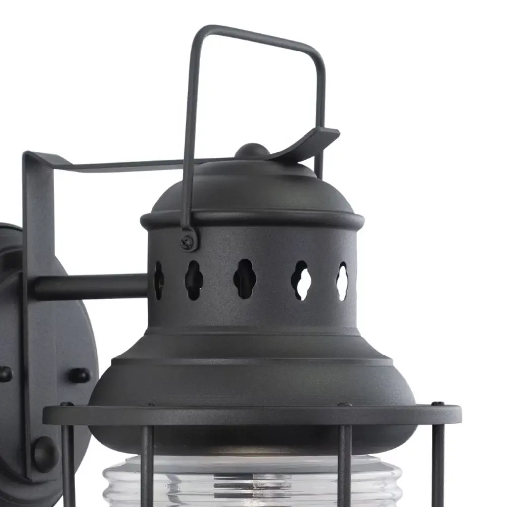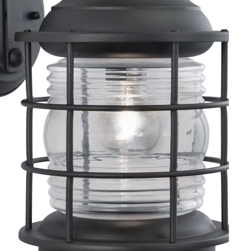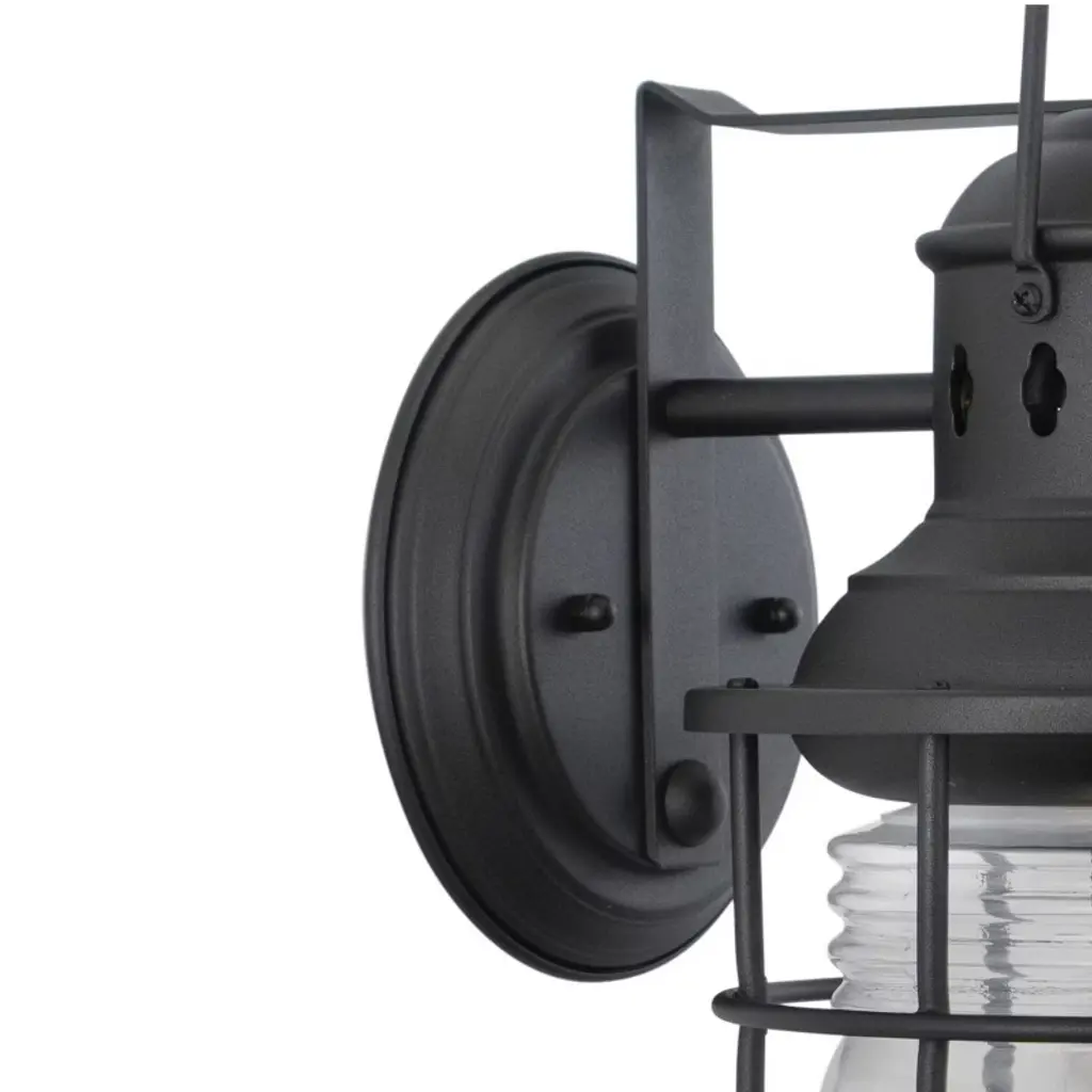 Collection: Hyannis, Material: Steel, Finish Color: Textured Black, Width: 15", Height: 12.25", Depth: 23", Height From Outlet Box: 5.25", Backplate Width: 4.72", Backplate Length: 4.72", Lamping Type: Incandescent, Number Of Bulbs: 1, Wattage: 100 Watts, Dimmable: Yes, Moisture Rating: Wet Rated, Desc: A traditional nautical lantern, the Hyannis takes a classic style and makes it better. It features sturdy steel construction with multiple finish options and clear glass. Experience this coastal look for yourself. It is sure to be a great addition to your homes exterior decor. Ideal for your porch, entryway, garage, or any other area of your home. Assembly Required: Yes / Back Plate Height: 4.72 / Back Plate Width: 4.72 / Bulb Shape: A19 / Dimmable: Yes / Shade Included: Yes. ,