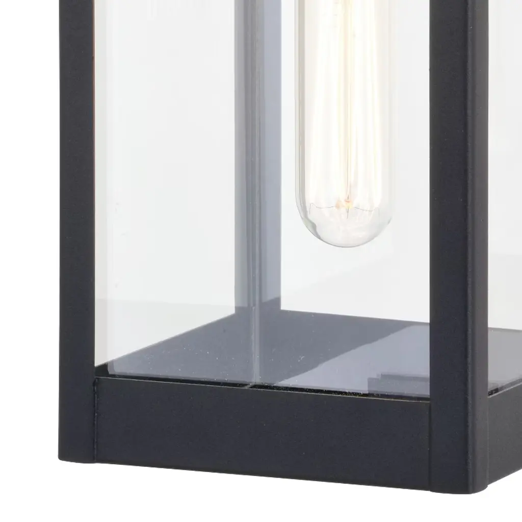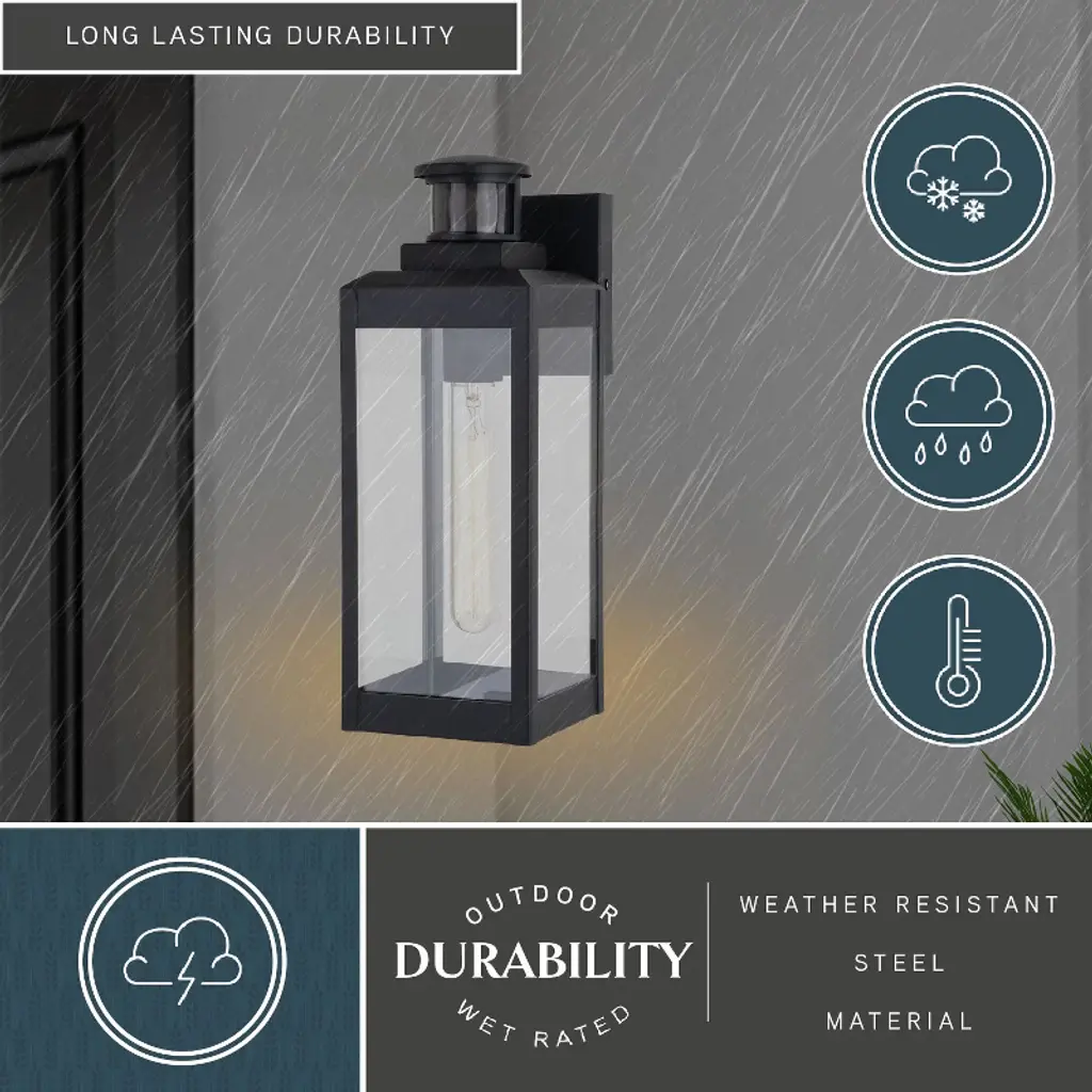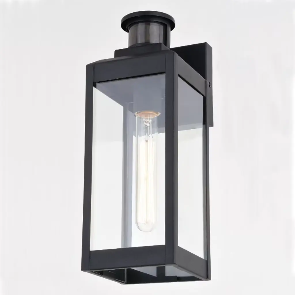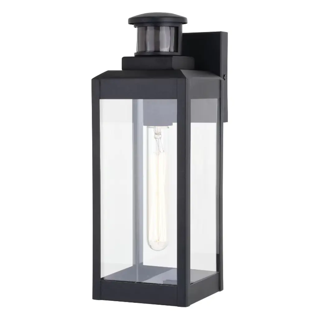 Vaxcel Kinzie Black Motion Sensor Dusk To Dawn Outdoor Wall Light Clear Glass