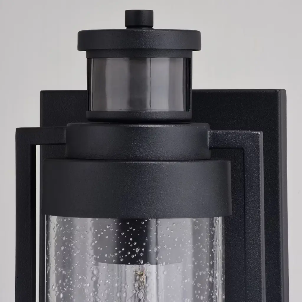 Vaxcel Lawton Steel Led Compatible Black Motion Sensor Dusk To Dawn Outdoor Wall Light Transitional Clear Glass