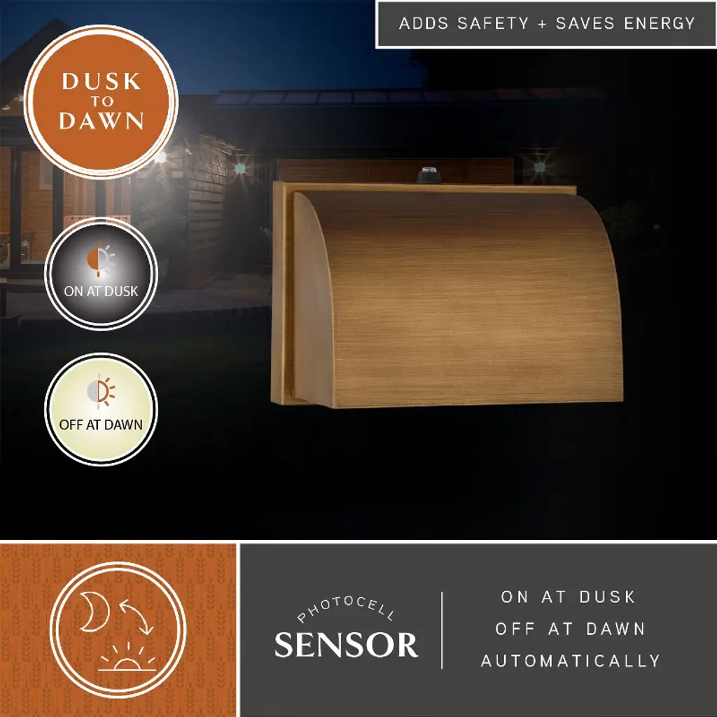 Vaxcel Walsh Dusk To Dawn Ada Dark Sky Outdoor Wall Light Fixture Lantern, Warm Brass, 7 Inch W