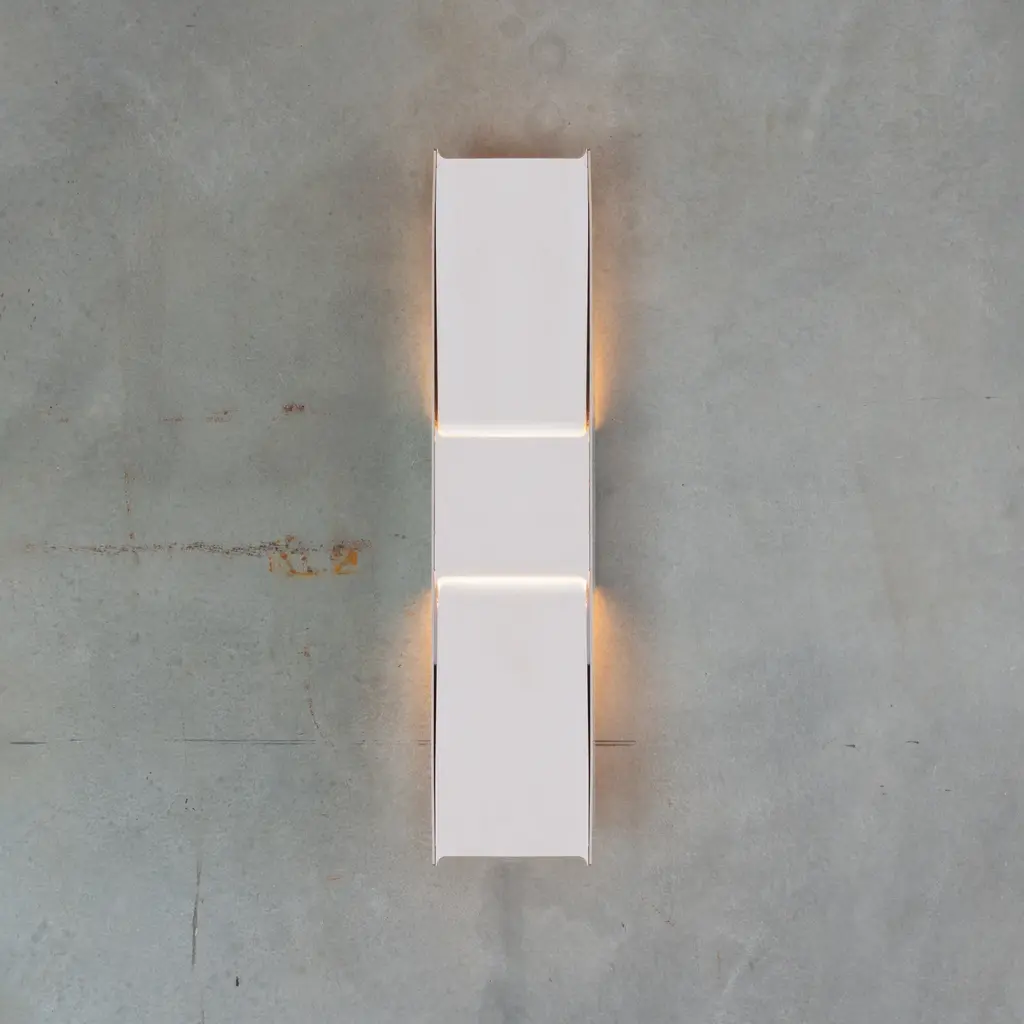 Nodding to great Brutalist monuments, Vector from Vancouver lighting house A-N-D reveals slight openings on architectural planes as it plays with voids and volumes. Fashioned in uncompromising steel, the single rectilinear section adapted from designer Lukas Peet’s series can be affixed to the wall in a vertical or horizontal orientation, exposing its honest, reductionist form.