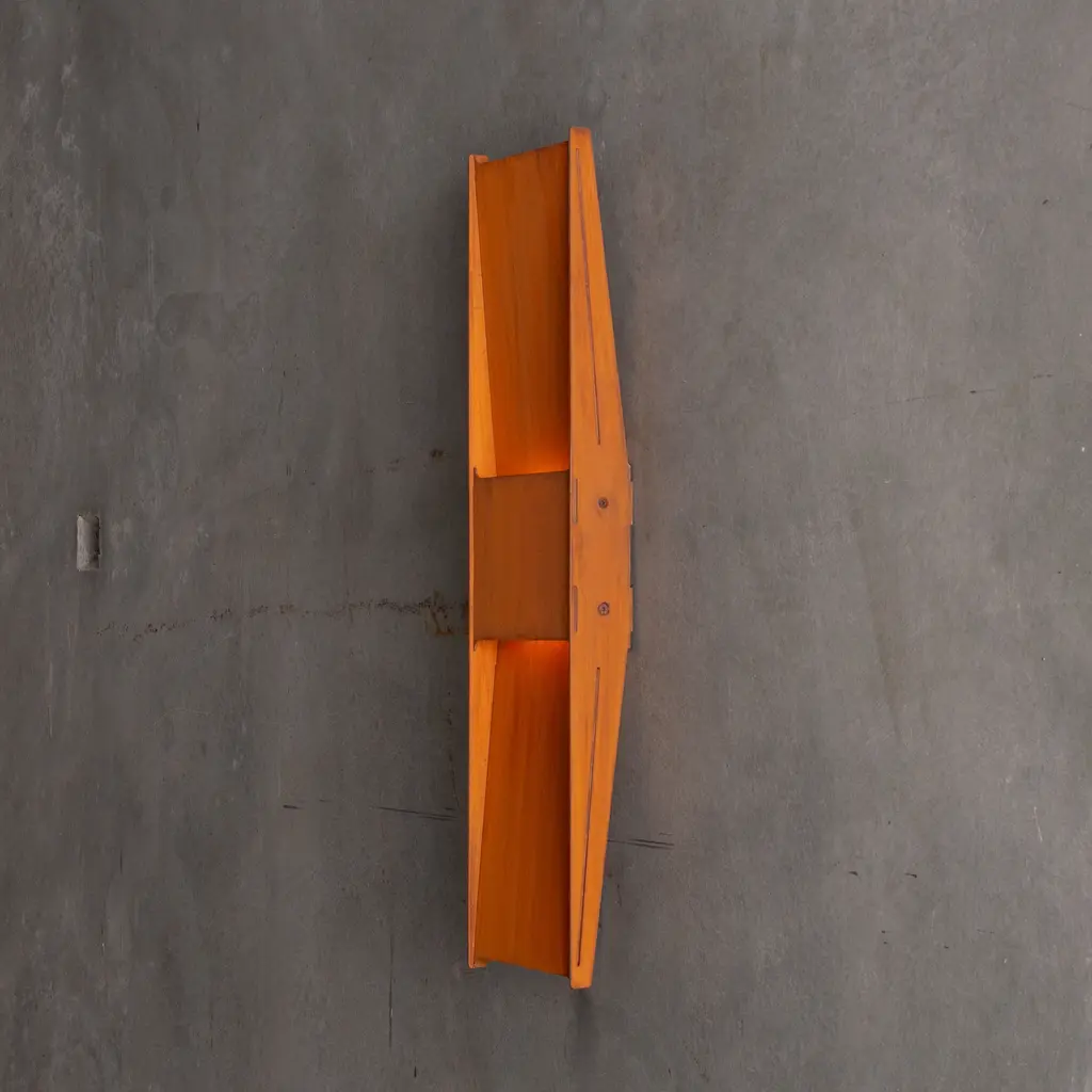 Nodding to great Brutalist monuments, Vector from Vancouver lighting house A-N-D reveals slight openings on architectural planes as it plays with voids and volumes. Fashioned in uncompromising steel, the single rectilinear section adapted from designer Lukas Peet’s series can be affixed to the wall in a vertical or horizontal orientation, exposing its honest, reductionist form.