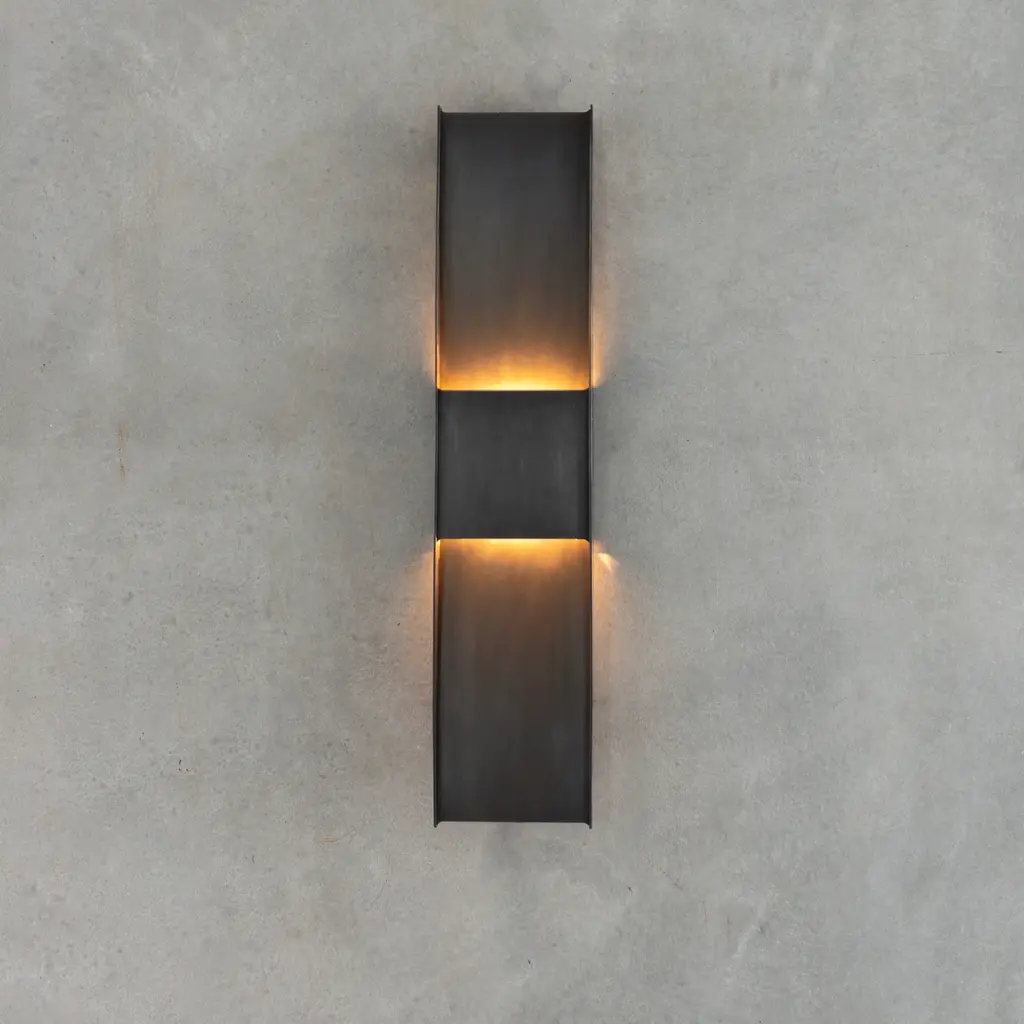 Nodding to great Brutalist monuments, Vector from Vancouver lighting house A-N-D reveals slight openings on architectural planes as it plays with voids and volumes. Fashioned in uncompromising steel, the single rectilinear section adapted from designer Lukas Peet’s series can be affixed to the wall in a vertical or horizontal orientation, exposing its honest, reductionist form.