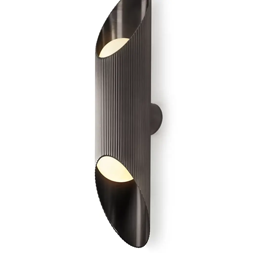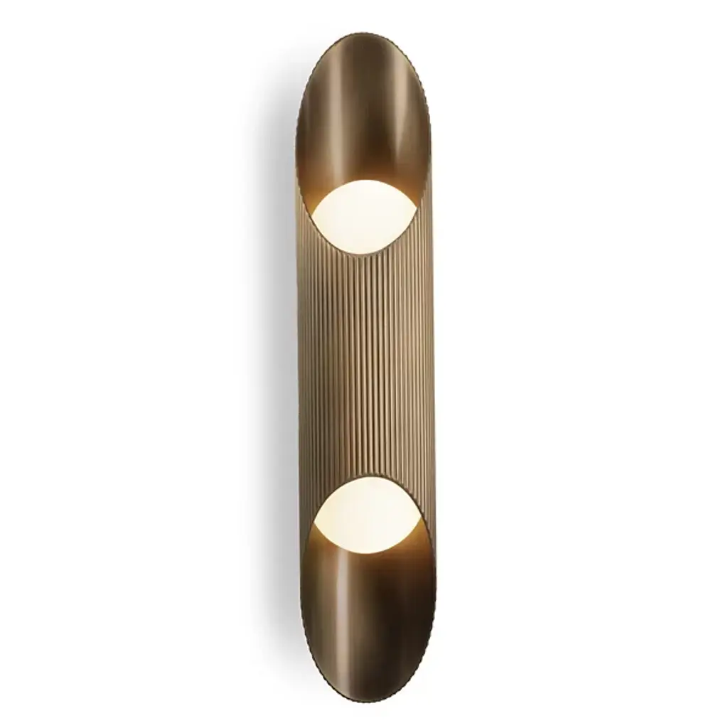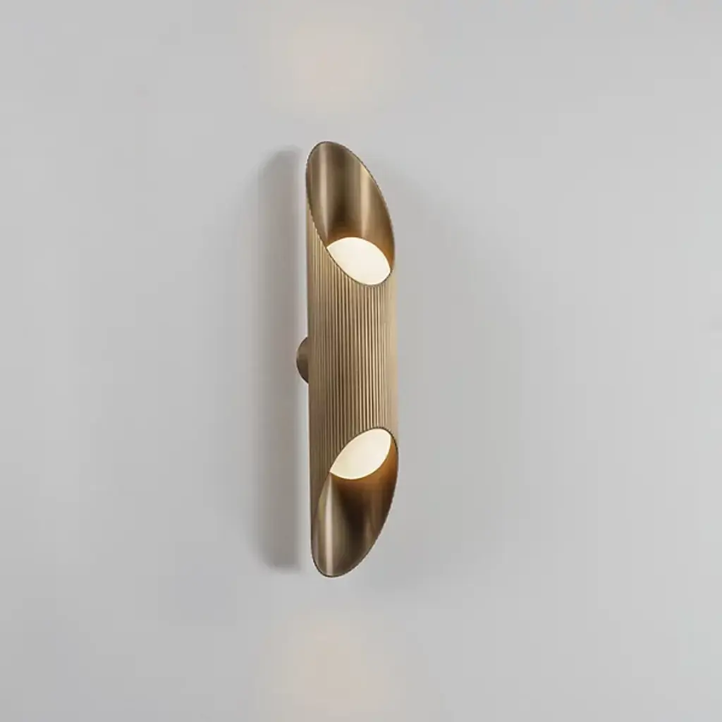 Add to the grandeur of your halls with the Vector Wall Sconce. A discreet backplate anchors to your wall and bolsters a cylindrical brass casing. The sconce is carved into an innovative form that showcases concave slopes at the base and summit of the light’s body. These smooth impressions assist in the reflective dispersal of the LED light. The sconce’s vertical orientation and sleek appearance make it the perfect complement to your current contemporary space.