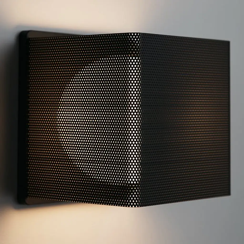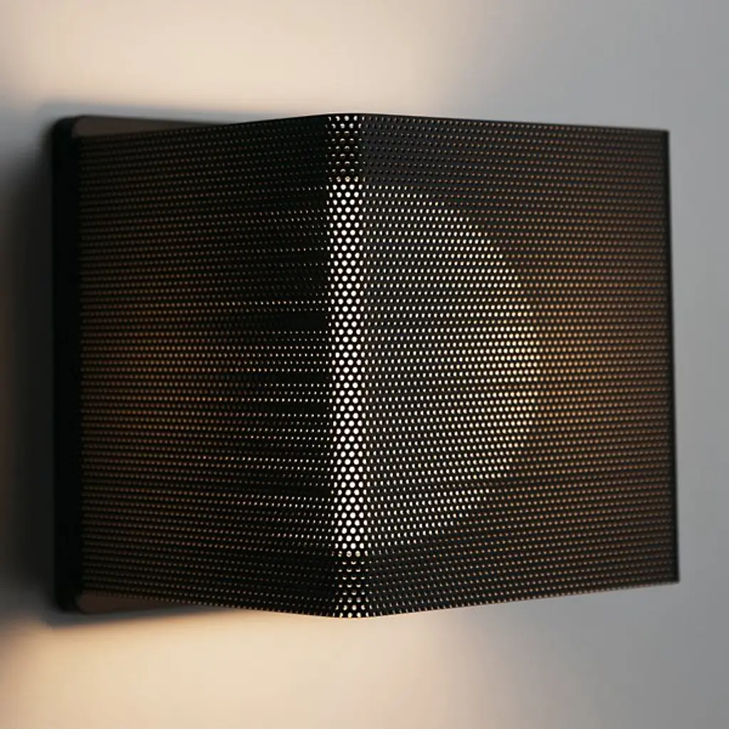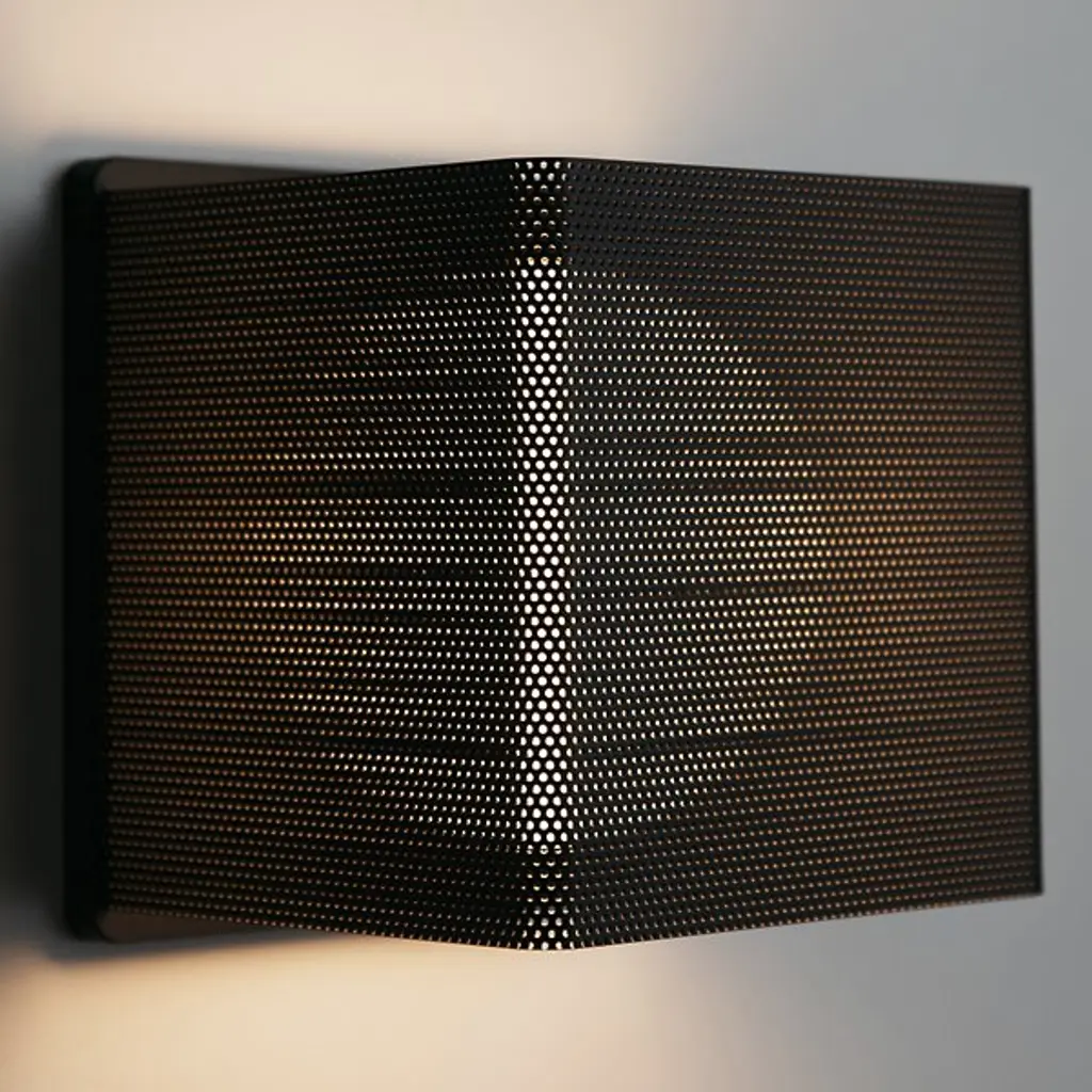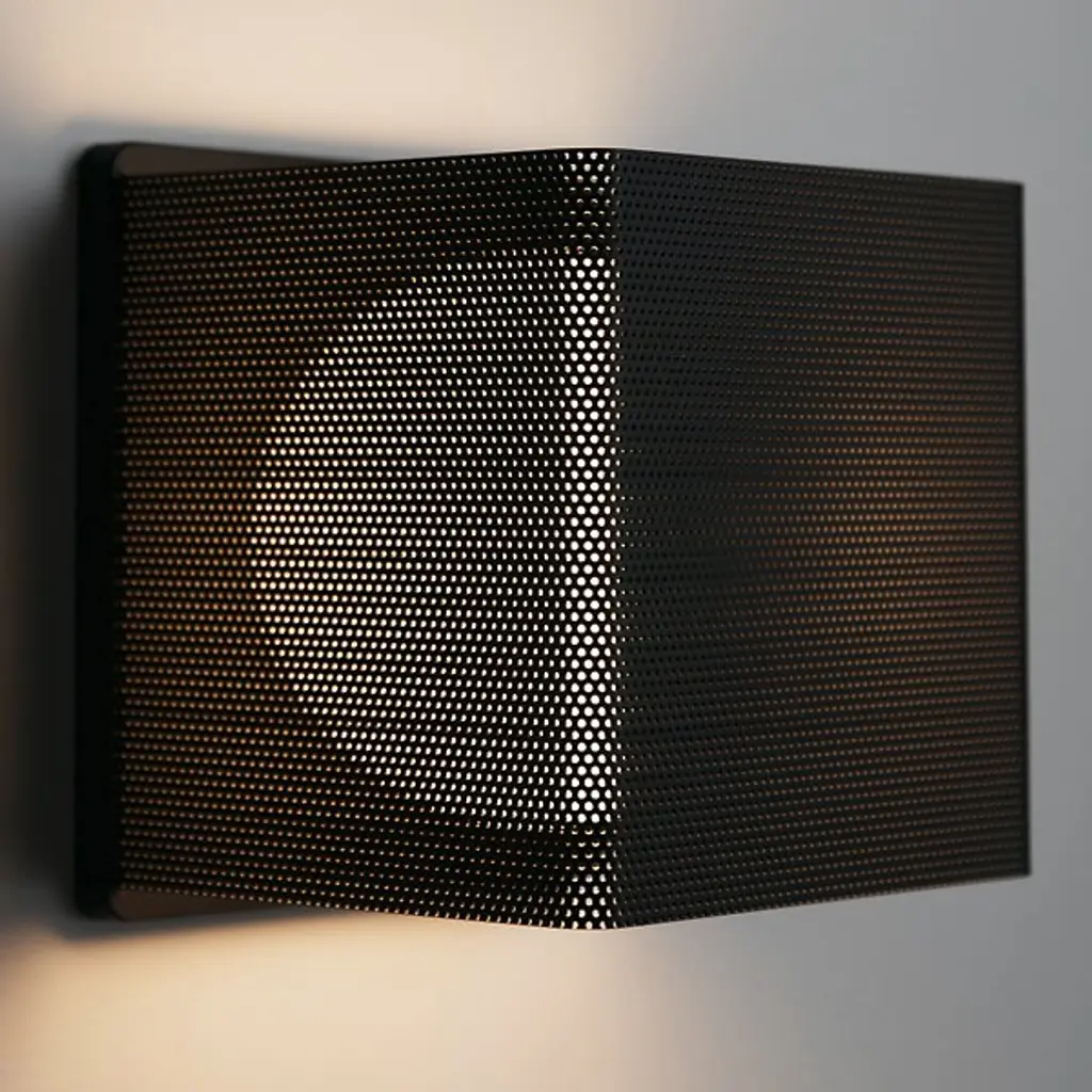 Present an inspired appeal to interior spaces with the clever, curve-cornered construction of the Veil 8 Wall Sconces from Tomnuk Design. An excellent choice for residential lighting while remaining touch enough for commercial use. Updated industrial simplicity is the brainchild of Jordan Tomnuk. Starting with a square metal wall plate that holds the fixture’s lamping securely, the lamping is accompanied by a slim steel shade accented by a series of tiny pinholes, forming an intricate pattern. The glass diffuser set within is hand-blown, creating an individual warmth as it mellows direct glare to all sides and splashes a band of soft warmth to the center, running between angular projections of vertical wall wash.