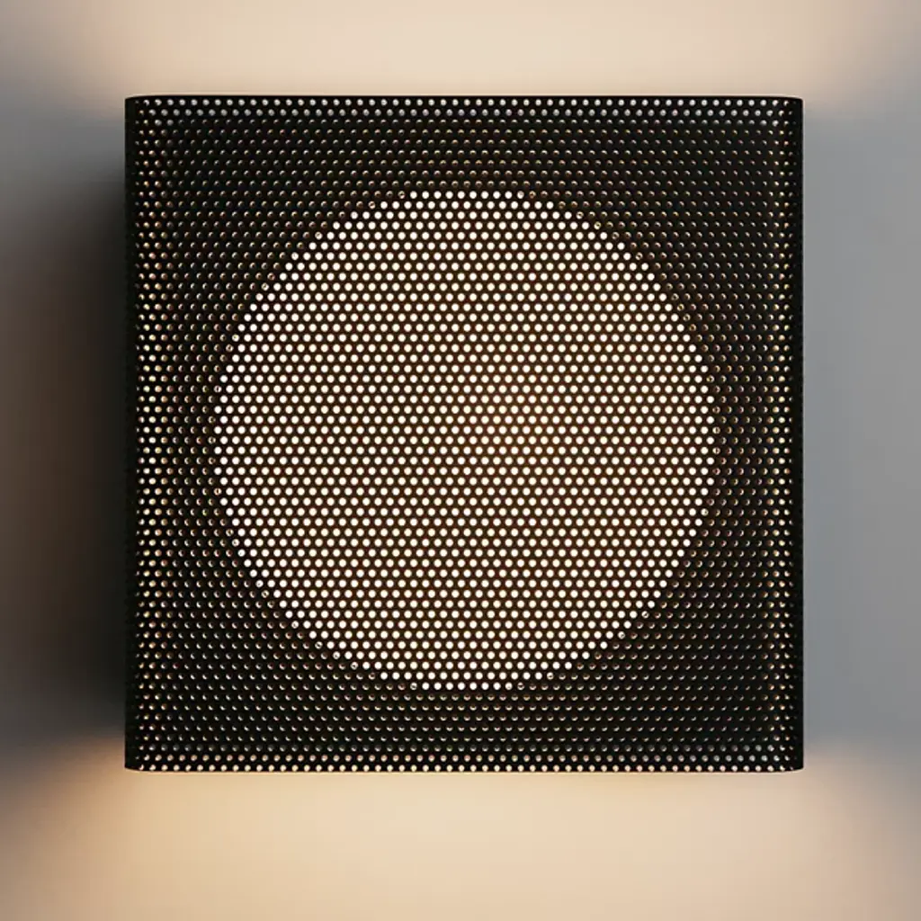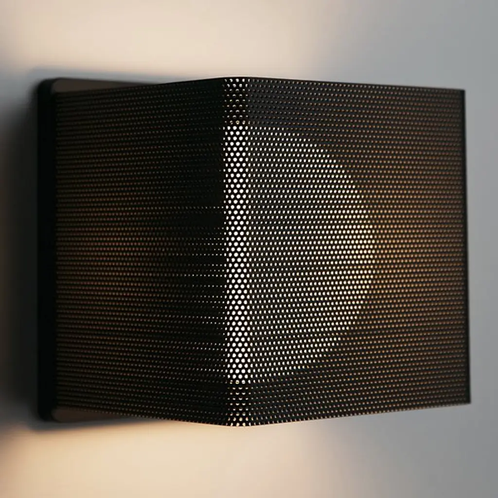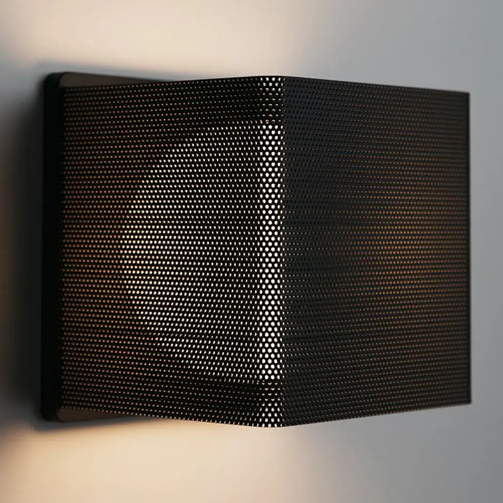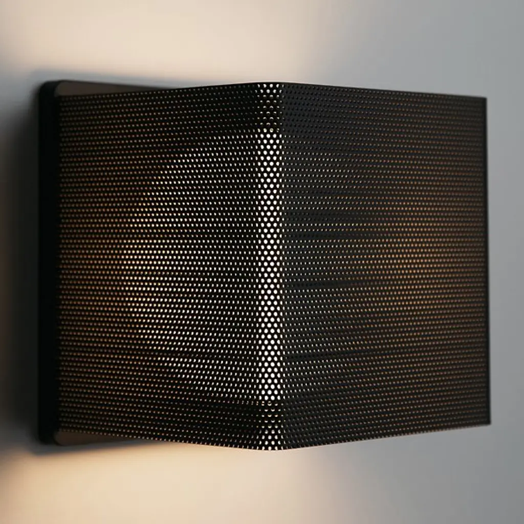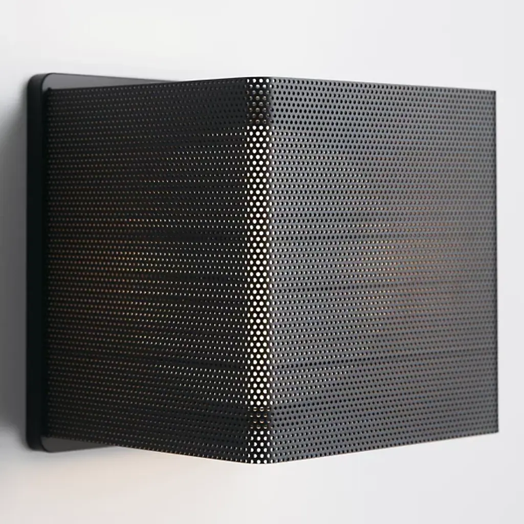 Present an inspired appeal to interior spaces with the clever, curve-cornered construction of the Veil 8 Wall Sconces from Tomnuk Design. An excellent choice for residential lighting while remaining touch enough for commercial use. Updated industrial simplicity is the brainchild of Jordan Tomnuk. Starting with a square metal wall plate that holds the fixture’s lamping securely, the lamping is accompanied by a slim steel shade accented by a series of tiny pinholes, forming an intricate pattern. The glass diffuser set within is hand-blown, creating an individual warmth as it mellows direct glare to all sides and splashes a band of soft warmth to the center, running between angular projections of vertical wall wash.