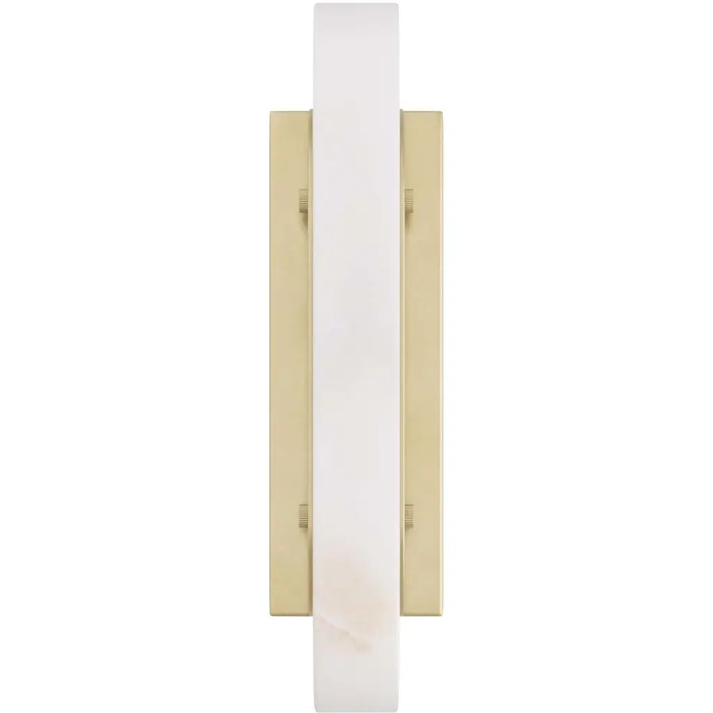 With a distinctive deco influence, our velasco sconce is updated in a modern, streamlined design. The wall light is crafted in a narrow column of luxurious white alabaster affixed to a rectangular backplate of antique-brass iron, which grips the led diffuser on each side. Finish will vary. Damp-rated, although limited covered outdoor conditions may affect finish.