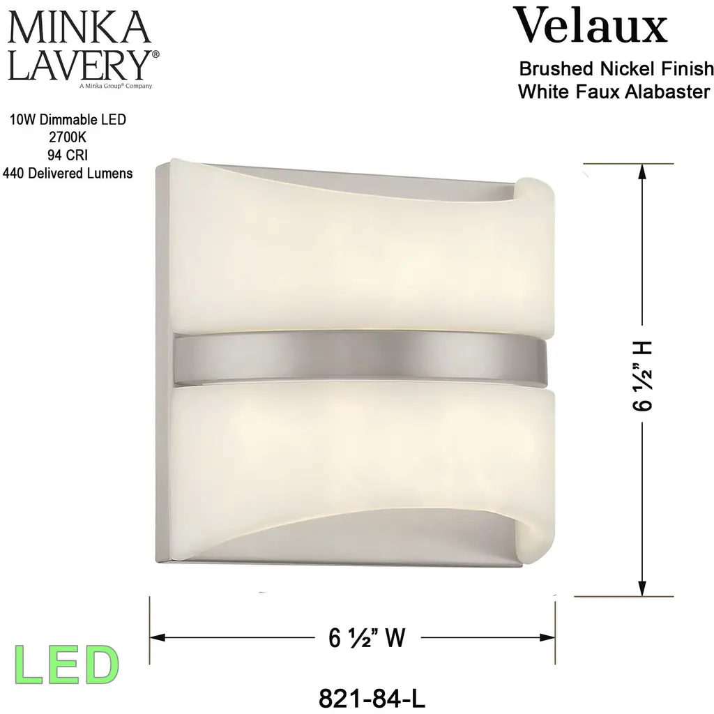 This 1 light Wall Sconce from the Velaux collection by Minka-Lavery will enhance your home with a perfect mix of form and function. The features include a Brushed Nickel finish applied by experts. This item qualifies for free shipping!