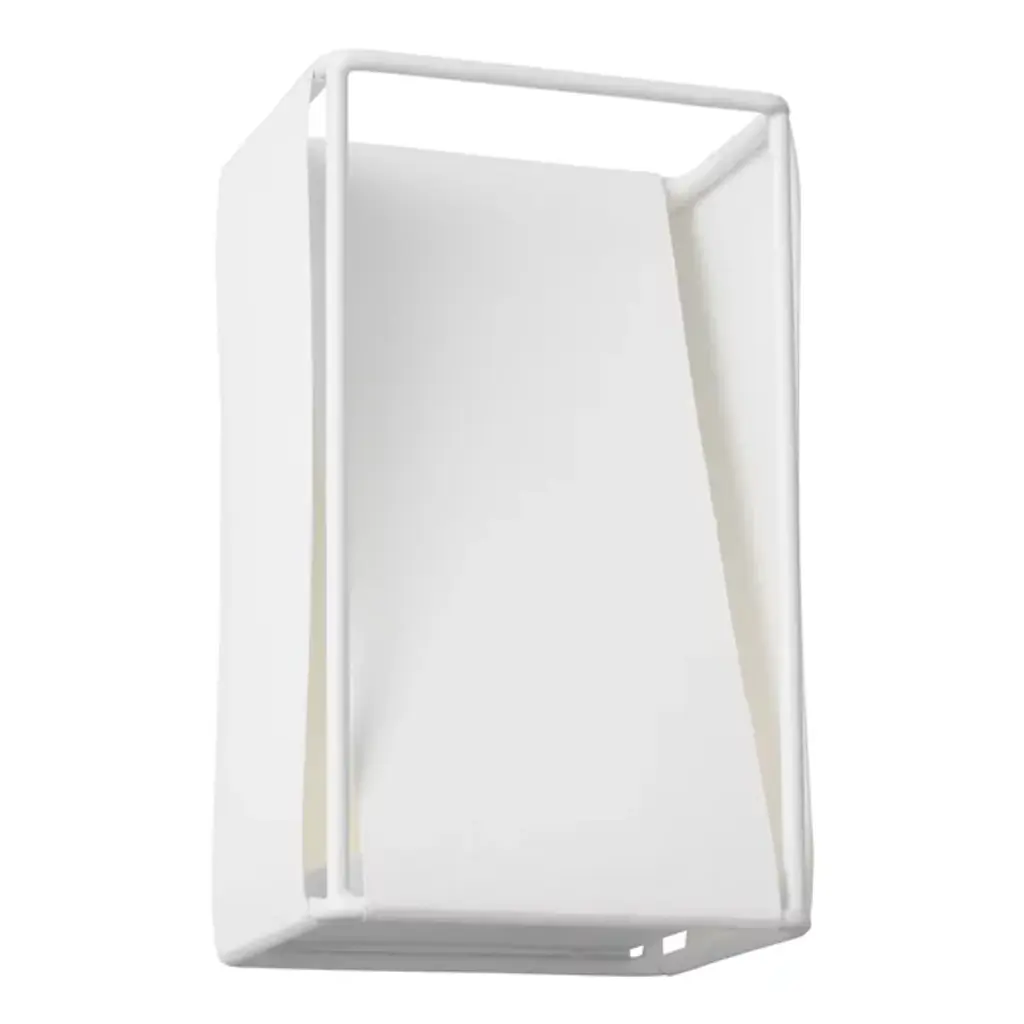 The Velero LED Wall Sconce from Visual Comfort Studio features clean rectangular profiles and an angular structure with a steel framework, while a linen fabric shade softens the integrated LED light source. Created by Kelly Wearstler, this wall-mounted fixture brings Italian design influences into modern settings with its architectural presence and considered proportions. It provides directed illumination ideal for hallways, bedrooms, and bathroom applications where controlled light is needed. The sconce’s minimal footprint conserves wall space while still delivering substantial light output with energy-efficient LED technology for long-lasting performance.