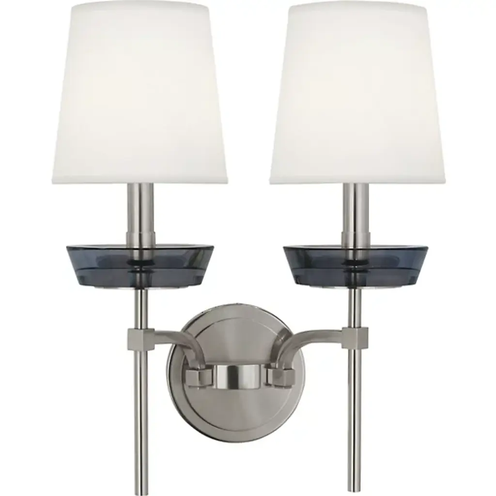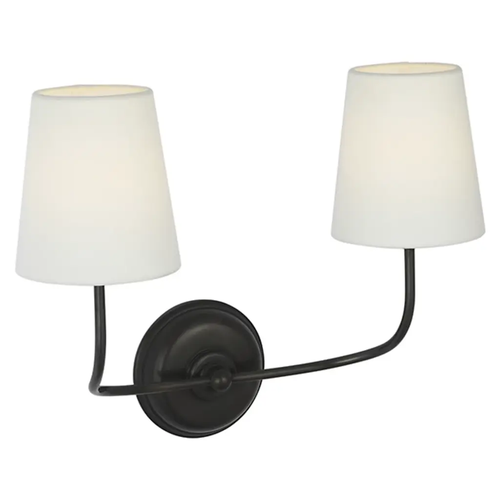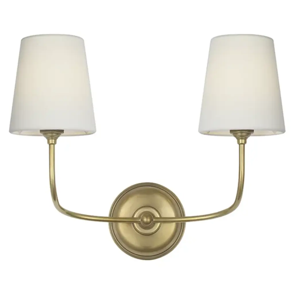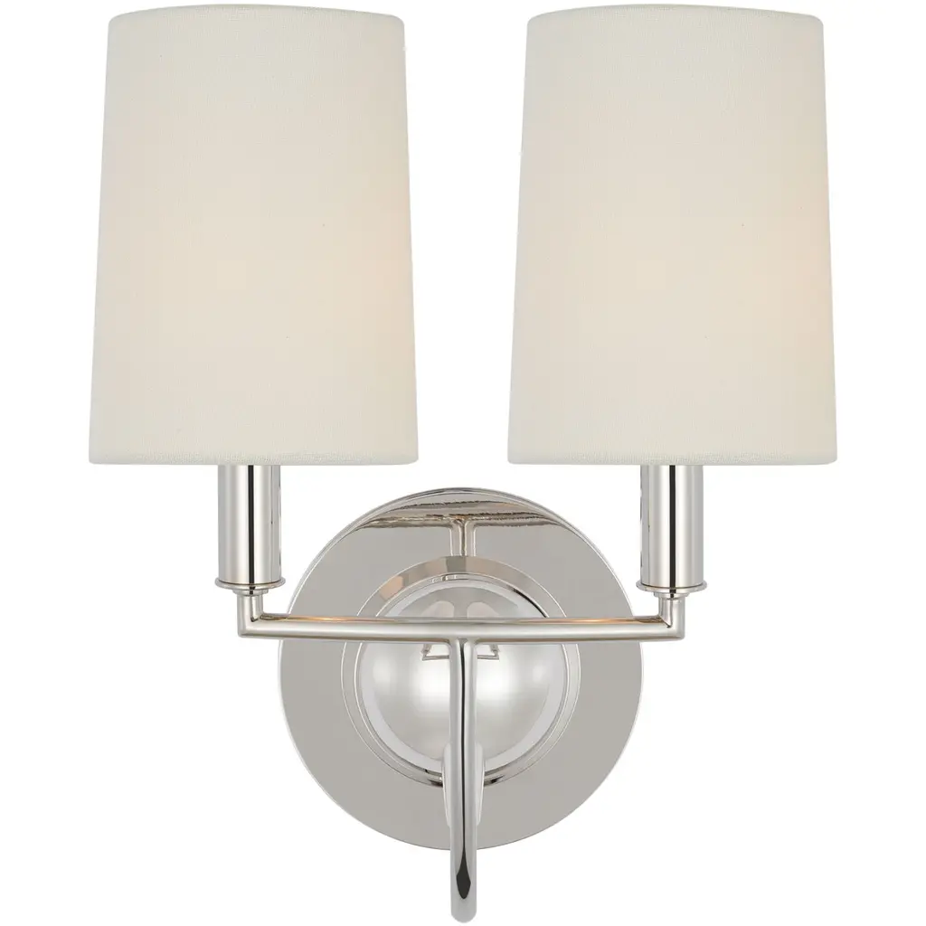 The Vendome LED Cordless Double Wall Sconce from Visual Comfort Signature liberates wall lighting from fixed electrical outlets with its innovative rechargeable design. Two linen shades extend from a central brass backplate, creating balanced illumination ideal for hallways, bedrooms, and dining areas. The built-in LED technology provides consistent lighting without wiring constraints. Created by acclaimed designer Thomas O'Brien, this sconce maintains traditional wall fixture aesthetics while offering unprecedented placement flexibility. Its cordless nature makes it perfect for renters, historic homes, or anyone seeking quality lighting without electrical modifications.
