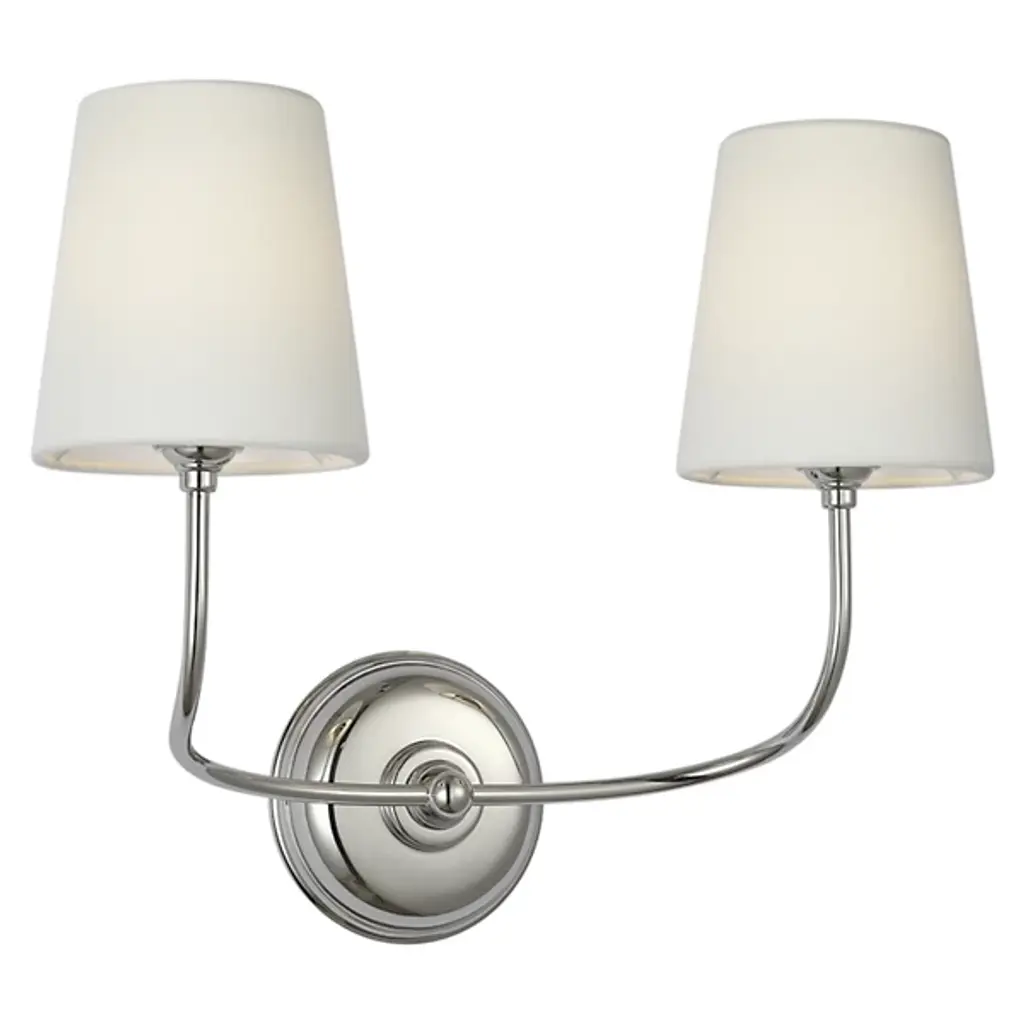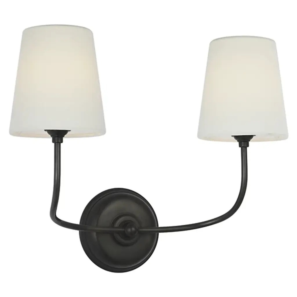 The Vendome LED Cordless Double Wall Sconce from Visual Comfort Signature liberates wall lighting from fixed electrical outlets with its innovative rechargeable design. Two linen shades extend from a central brass backplate, creating balanced illumination ideal for hallways, bedrooms, and dining areas. The built-in LED technology provides consistent lighting without wiring constraints. Created by acclaimed designer Thomas O'Brien, this sconce maintains traditional wall fixture aesthetics while offering unprecedented placement flexibility. Its cordless nature makes it perfect for renters, historic homes, or anyone seeking quality lighting without electrical modifications.