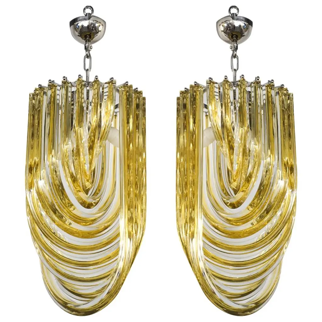 Venini Attributed Mid-Century Modern Pair Of Murano Glass Triedri Wall Sconces
