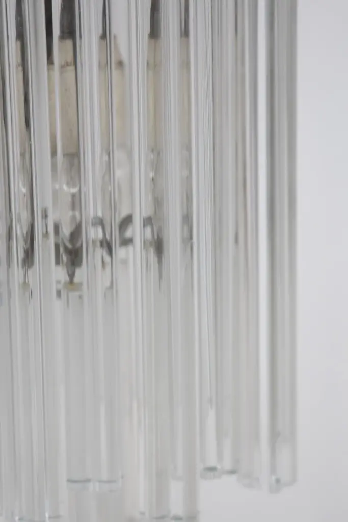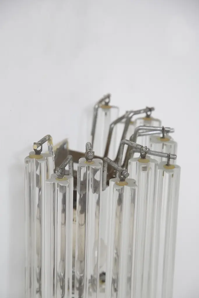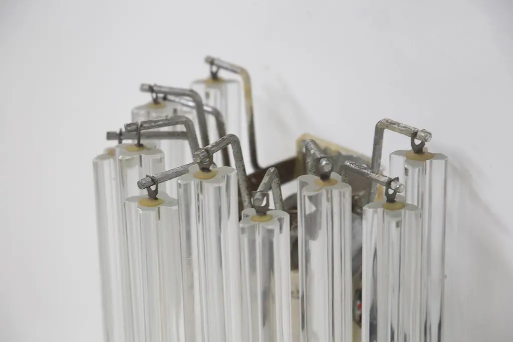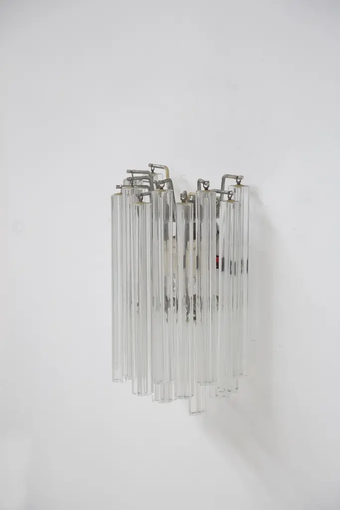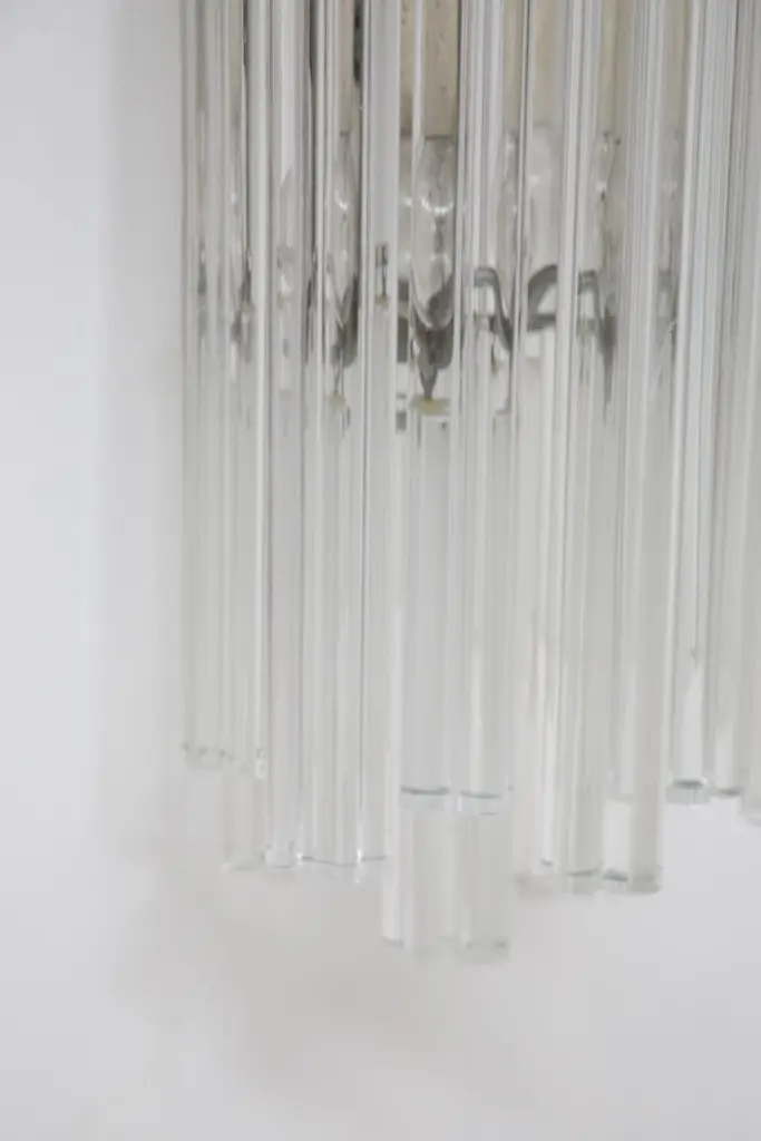 Italian eclectic wall sconce designed by the great master glassmaker Venini, from the 1960s, of fine Italian manufacture.It has the supporting structure made of durable iron, which supports the main structure made of glass stems.The sconce consists of two lights.The wall sconce is extremely beautiful, the elegance comes from the glass rods that create a truly magical effect.The wall sconce can be accompanied by its chandelier and is ideal for classically elegant rooms.
