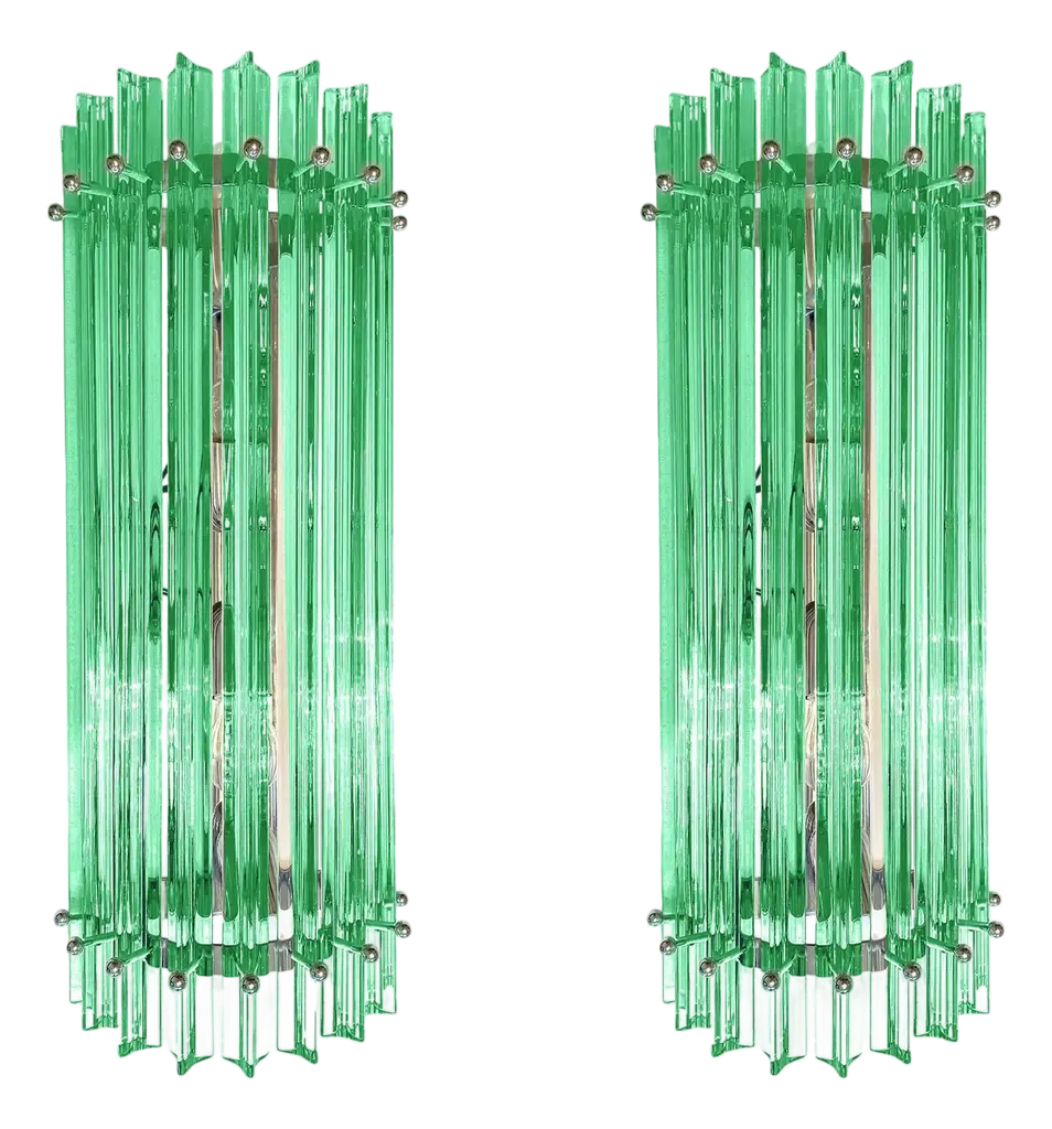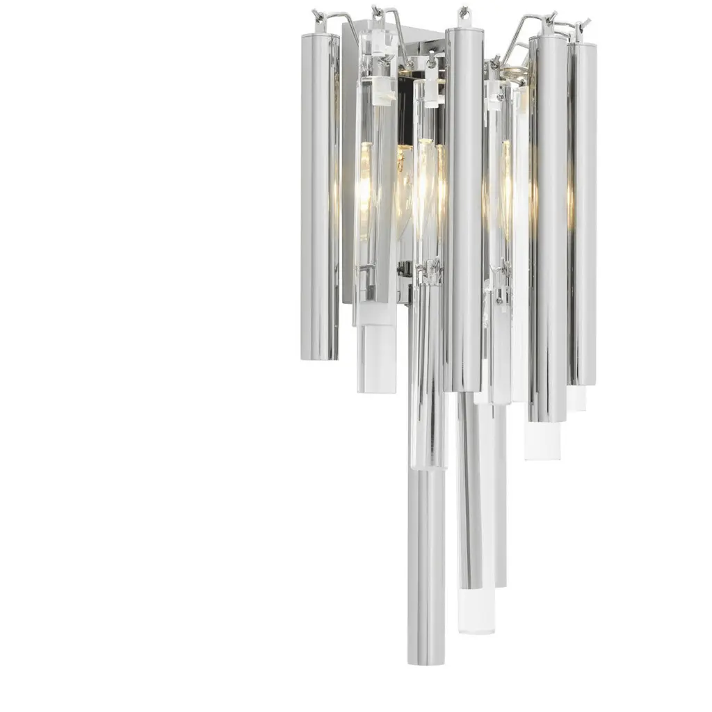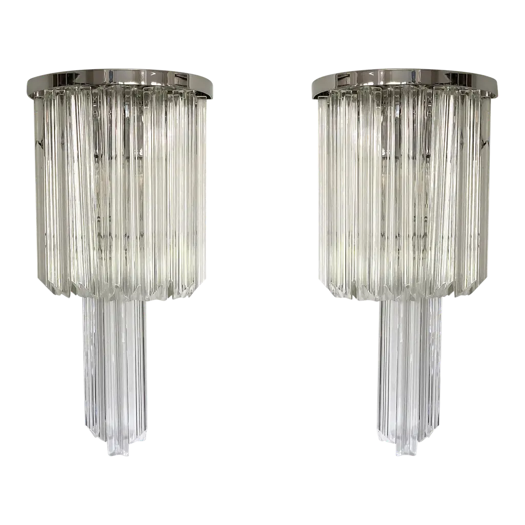 Italian eclectic wall sconce designed by the great master glassmaker Venini, from the 1960s, of fine Italian manufacture.It has the supporting structure made of durable iron, which supports the main structure made of glass stems.The sconce consists of two lights.The wall sconce is extremely beautiful, the elegance comes from the glass rods that create a truly magical effect.The wall sconce can be accompanied by its chandelier and is ideal for classically elegant rooms.