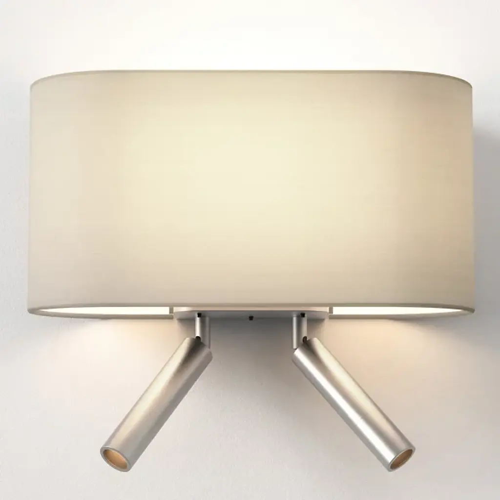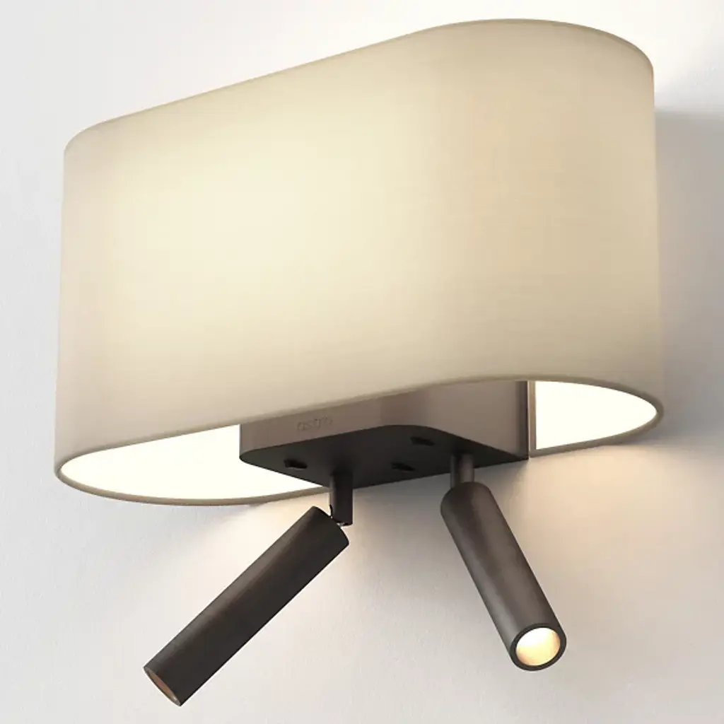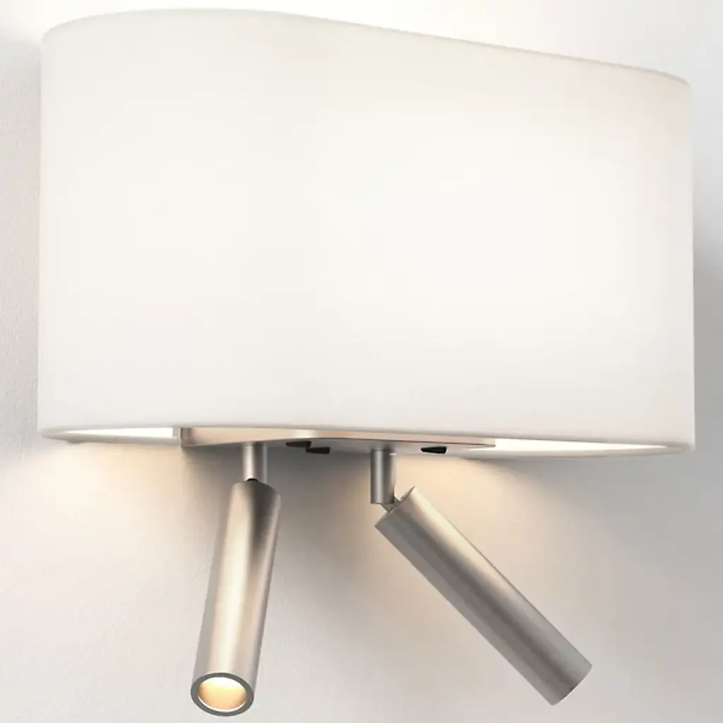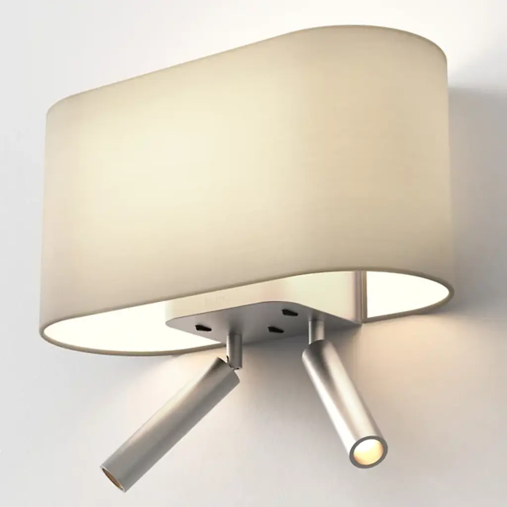 The Venn Twin Reader Wall Sconce from Astro Lighting was inspired by modernist architecture and introduces a warm ambient glow and dual-reading lights to contemporary guest rooms or hospitality spaces. The versatile wall-mounted design and robust die-cast zinc base position Venn as the ideal choice for dual-function lighting. Enhance your space with this luminaire that seamlessly blends style and functionality, offering both ambient illumination and focused reading lights in a sophisticated and modern package.