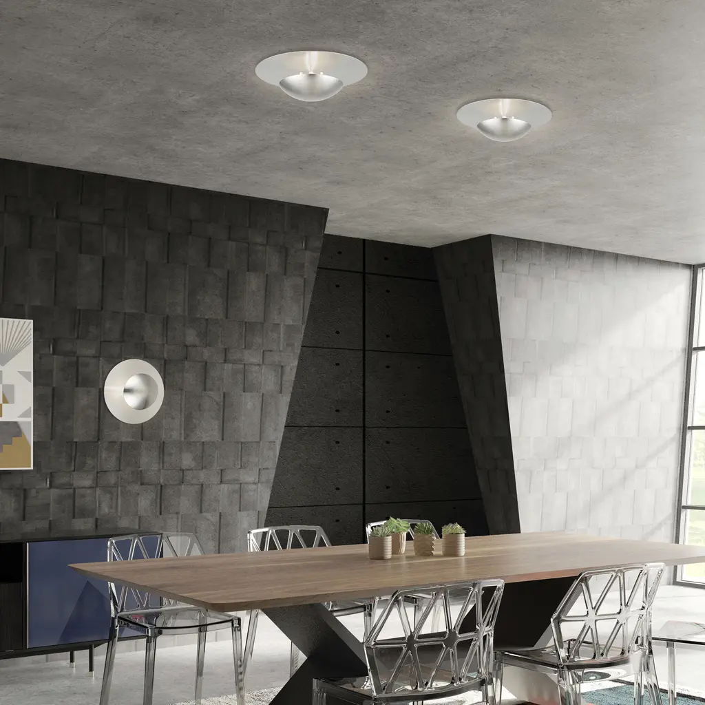2 Light Brushed Nickel Large Semi-Flush/ Wall Sconce