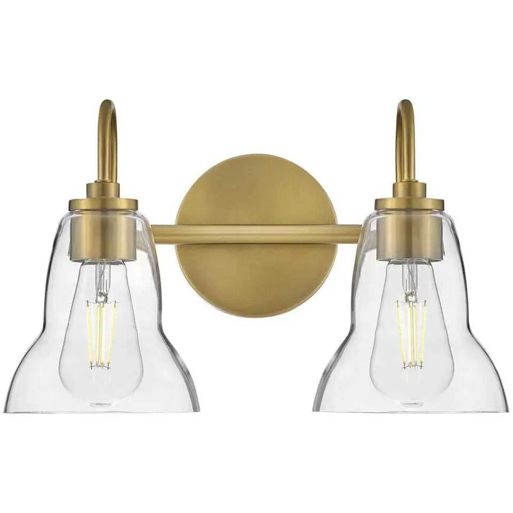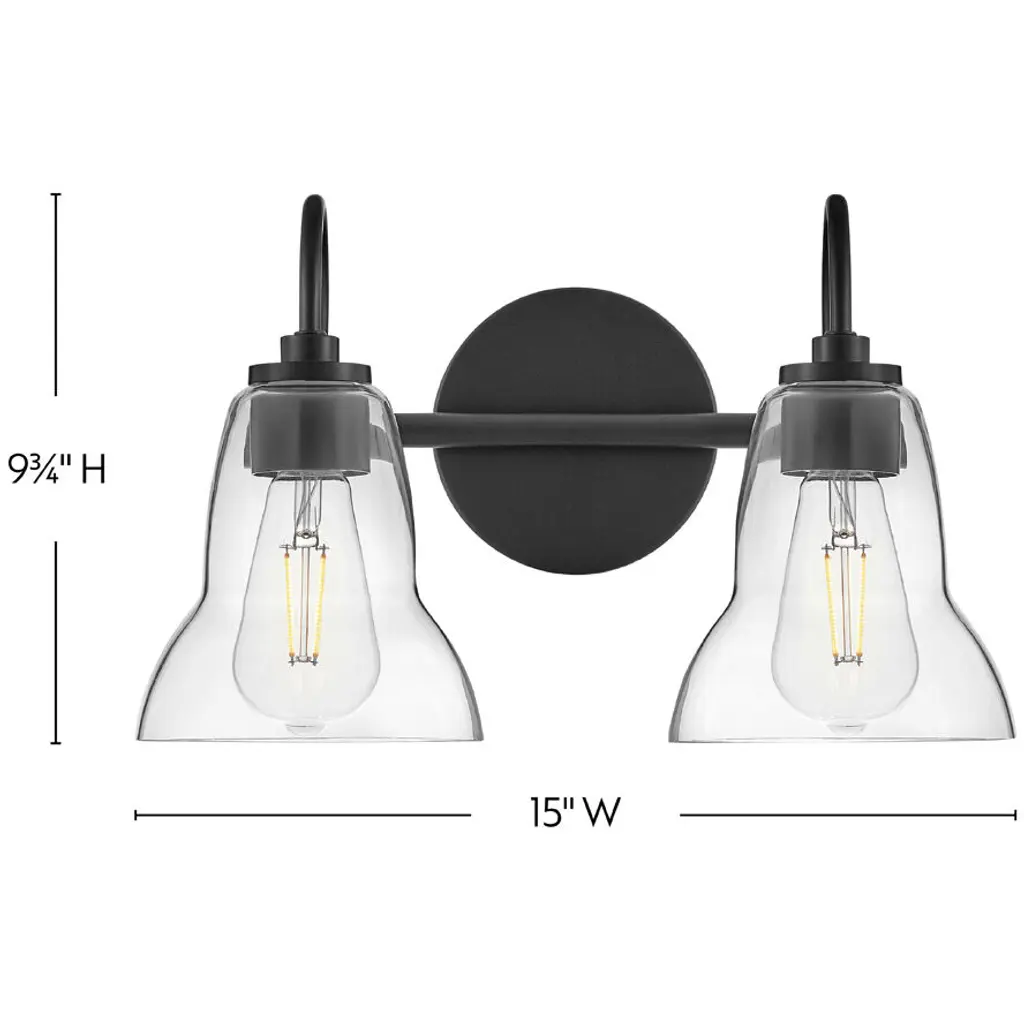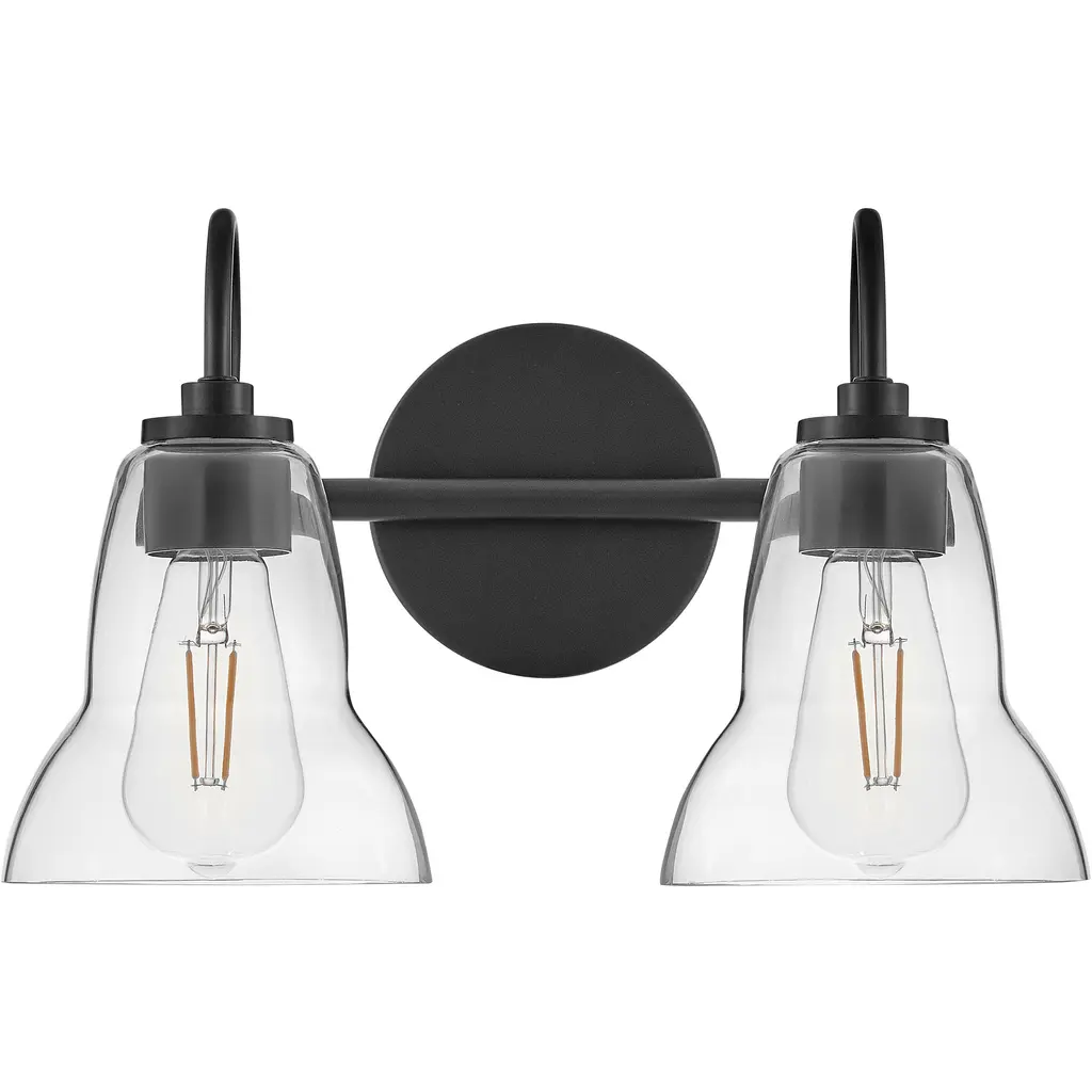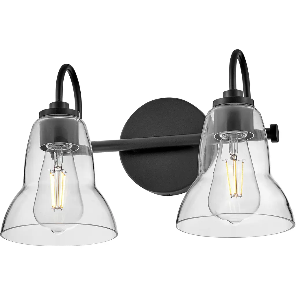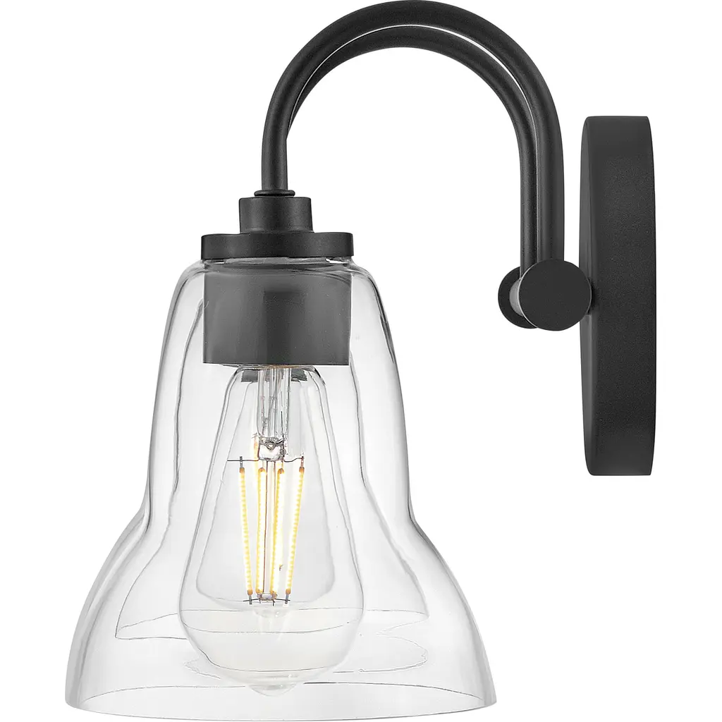 Vera’s unique, shapely form takes the traditional bell-shaped shades to a new level. Plenty of light shines up or down from the clear glass, making it a functional choice for main baths and powder rooms alike. Finished in Black or Lacquered Brass, Vera’s chic profile brings transitional style to any space.