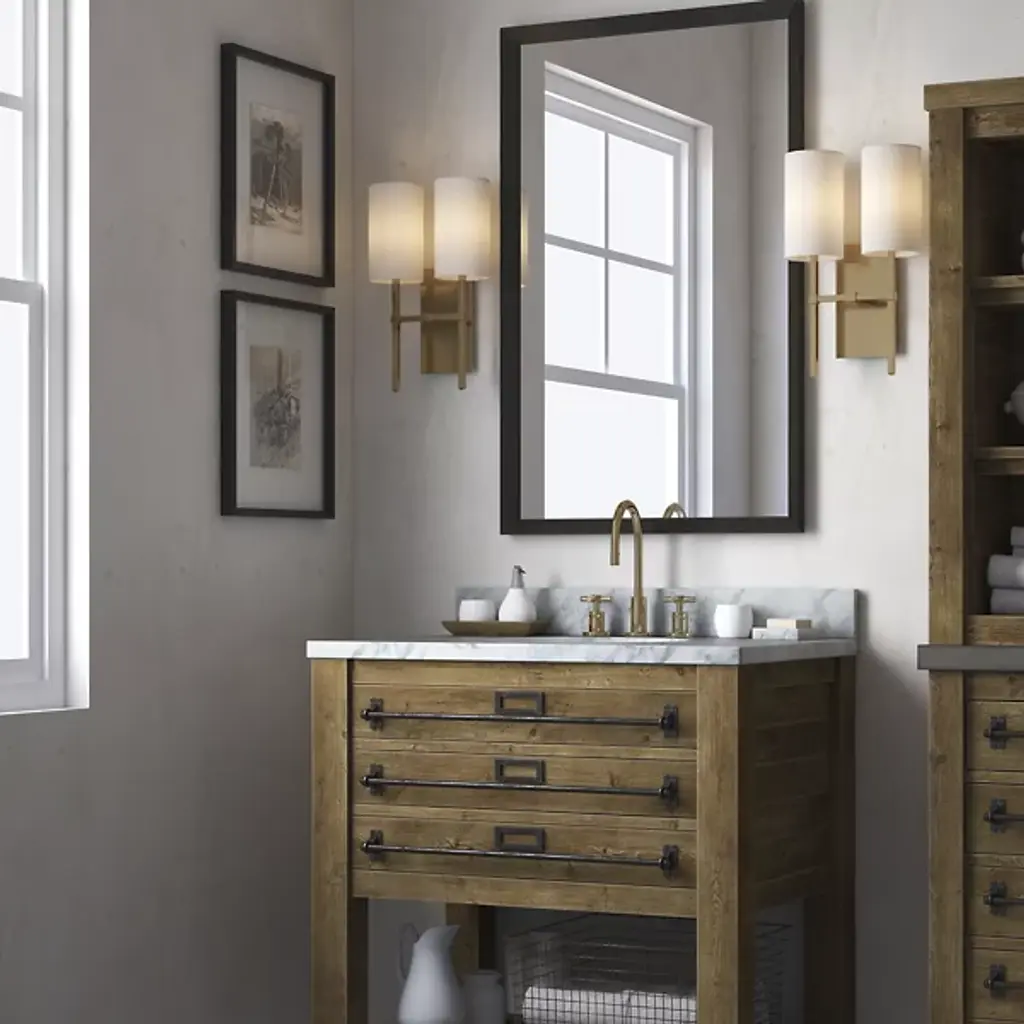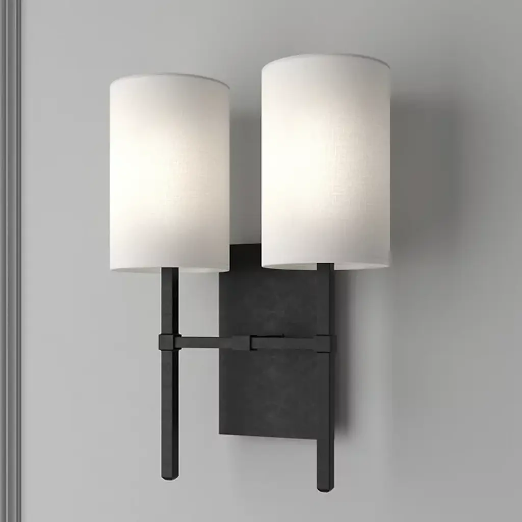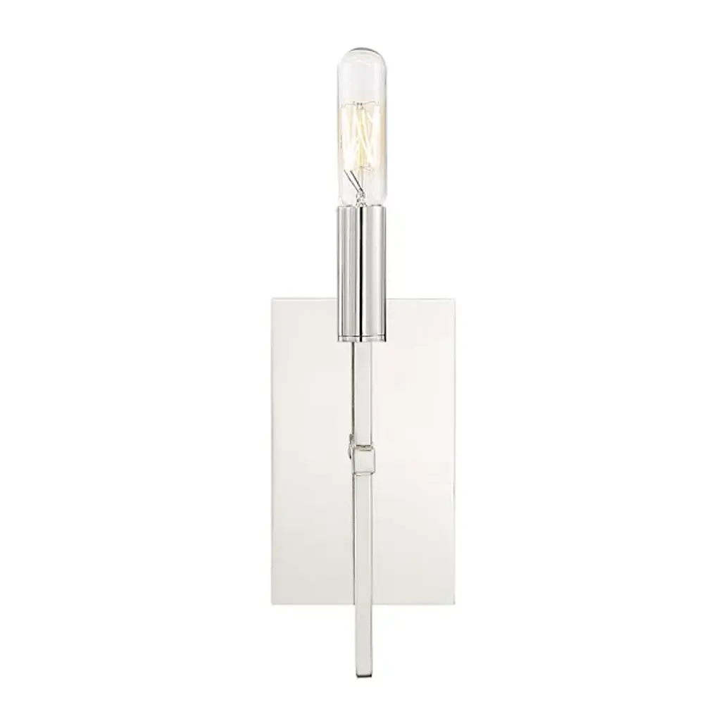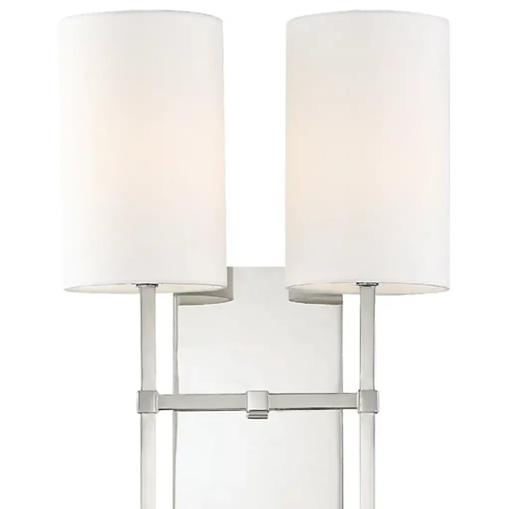 Upscale design. The Veronica Wall Sconce by Crystorama is made for those with sophisticated taste. It features a sleek arm and a rectangular wall-mounted plate in a timeless metal finish to complement home décor. A white cylindrical lamp shade completes it and allows for softly diffused accent lighting. A stylish option for living spaces, dining rooms or master suites, this transitional light fixture makes a statement as is or when paired with another.