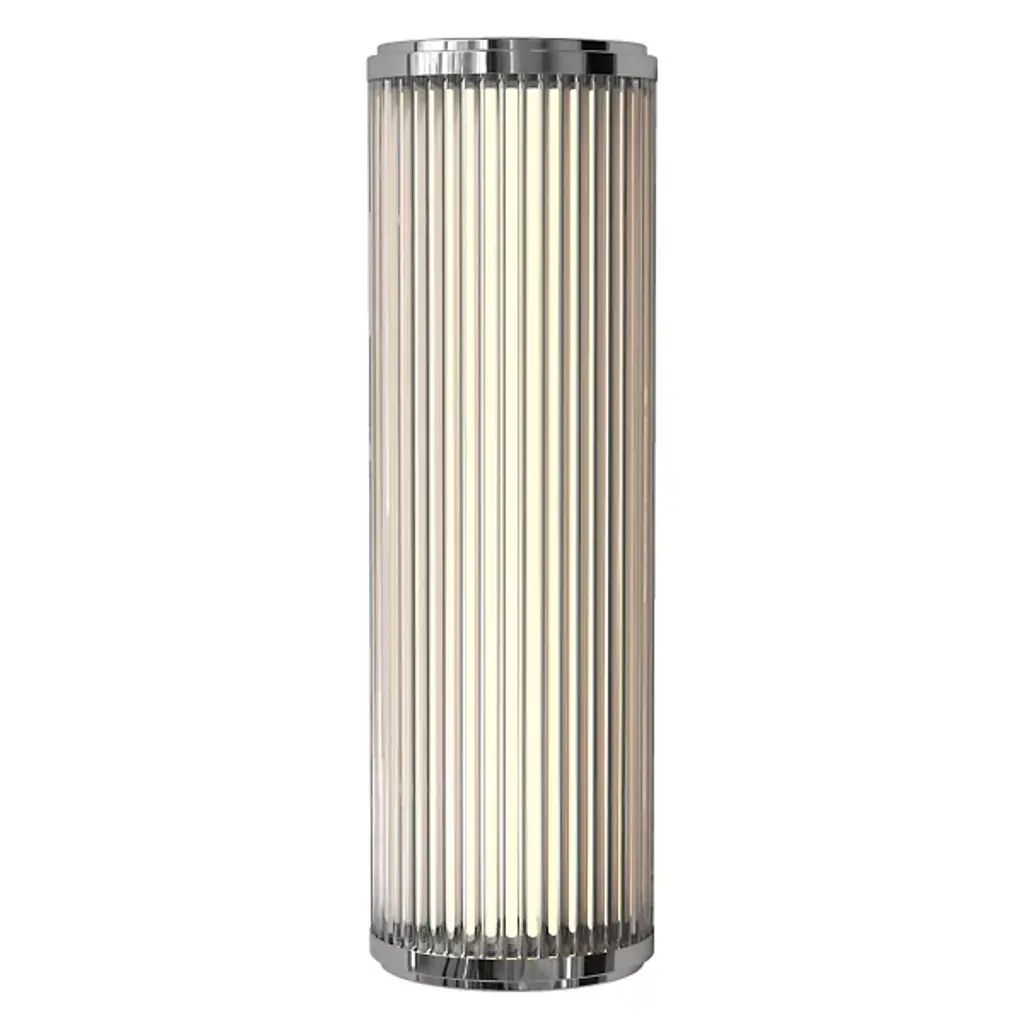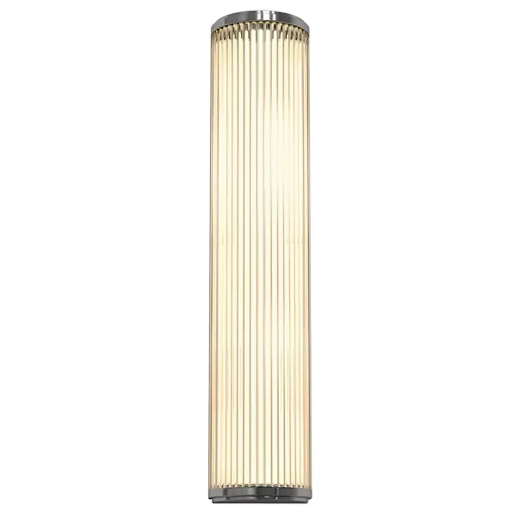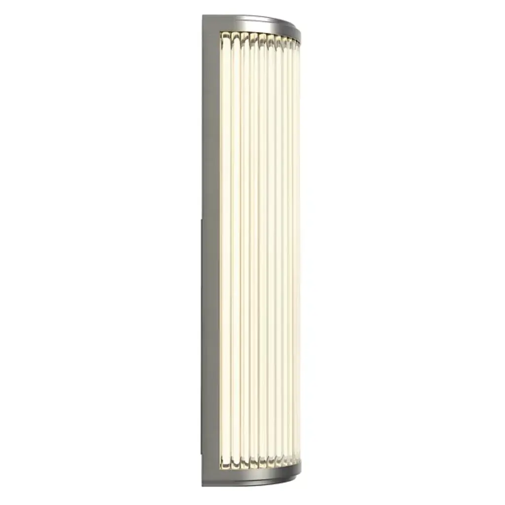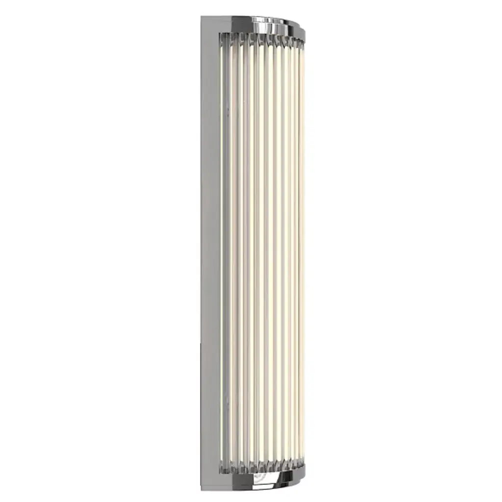 Brighten modern bathrooms with the Versailles Phase LED Bath Wall Sconce from Astro Lighting, a contemporary take on classic Art Deco lighting designs. Precisely crafted from steel end-caps and a support structure enhanced by a shade made of crystal glass with vertical ribbing, this sconce combines elegance with a touch of vintage flair. Designed for safe and energy-efficient use, Versailles is damp-rated and able to go anywhere indoors. The integrated LED lamping beneath the crystal glass shade provides an efficient and ambient glow, enhancing the decor with clever contrasts.
