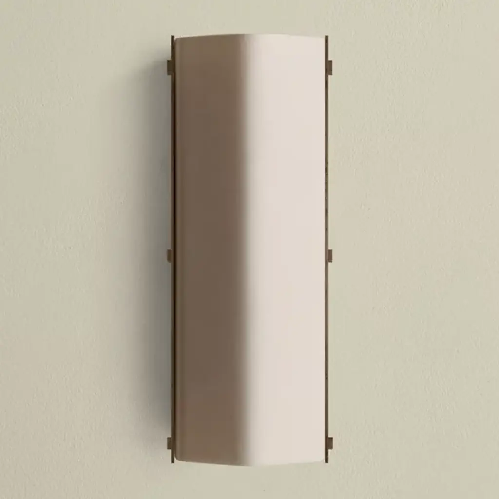 The Verso LED Wall Sconce from In Common With is a structured linear fixture designed with flexibility in mind. Its sculptural form features an inset slumped glass diffuser formed through experimental techniques—with visible brass-plated steel detailing for a balance of utility and artistry. A bracket-style frame holds the angled glass diffuser, allowing the integrated LED to cast a warm, inviting glow. ADA-compliant and damp-rated, it’s an excellent choice for adding light and rich artistic presence to a variety of indoor spaces.
