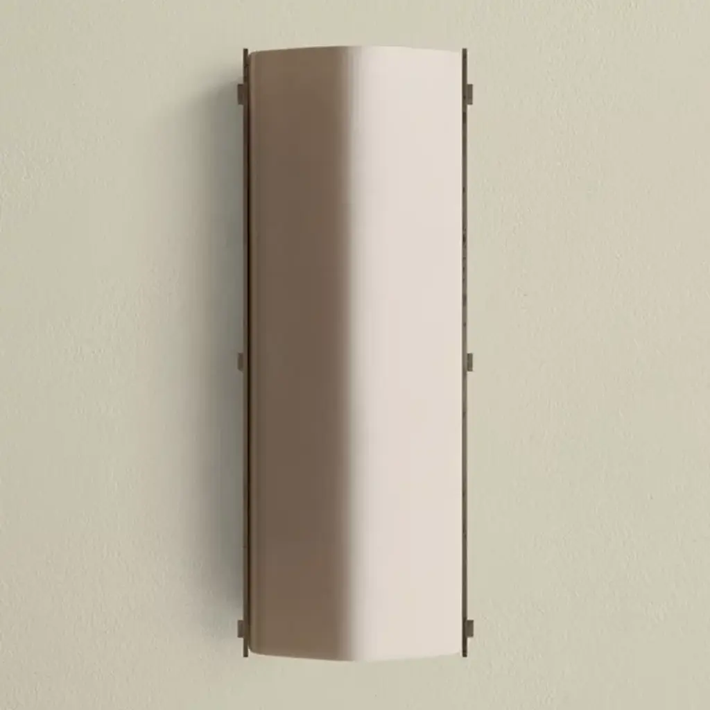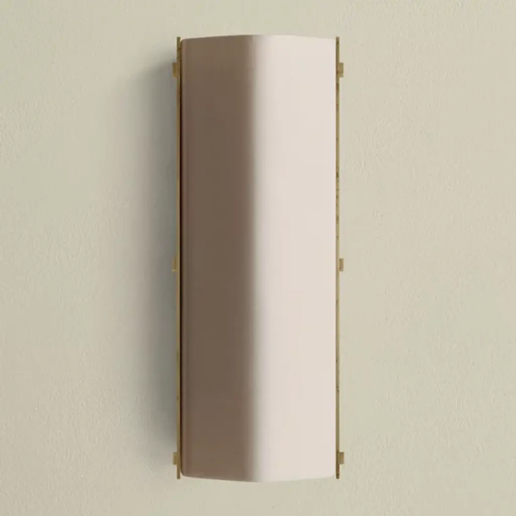 The Verso LED Wall Sconce from In Common With is a structured linear fixture designed with flexibility in mind. Its sculptural form features an inset slumped glass diffuser formed through experimental techniques—with visible brass-plated steel detailing for a balance of utility and artistry. A bracket-style frame holds the angled glass diffuser, allowing the integrated LED to cast a warm, inviting glow. ADA-compliant and damp-rated, it’s an excellent choice for adding light and rich artistic presence to a variety of indoor spaces.