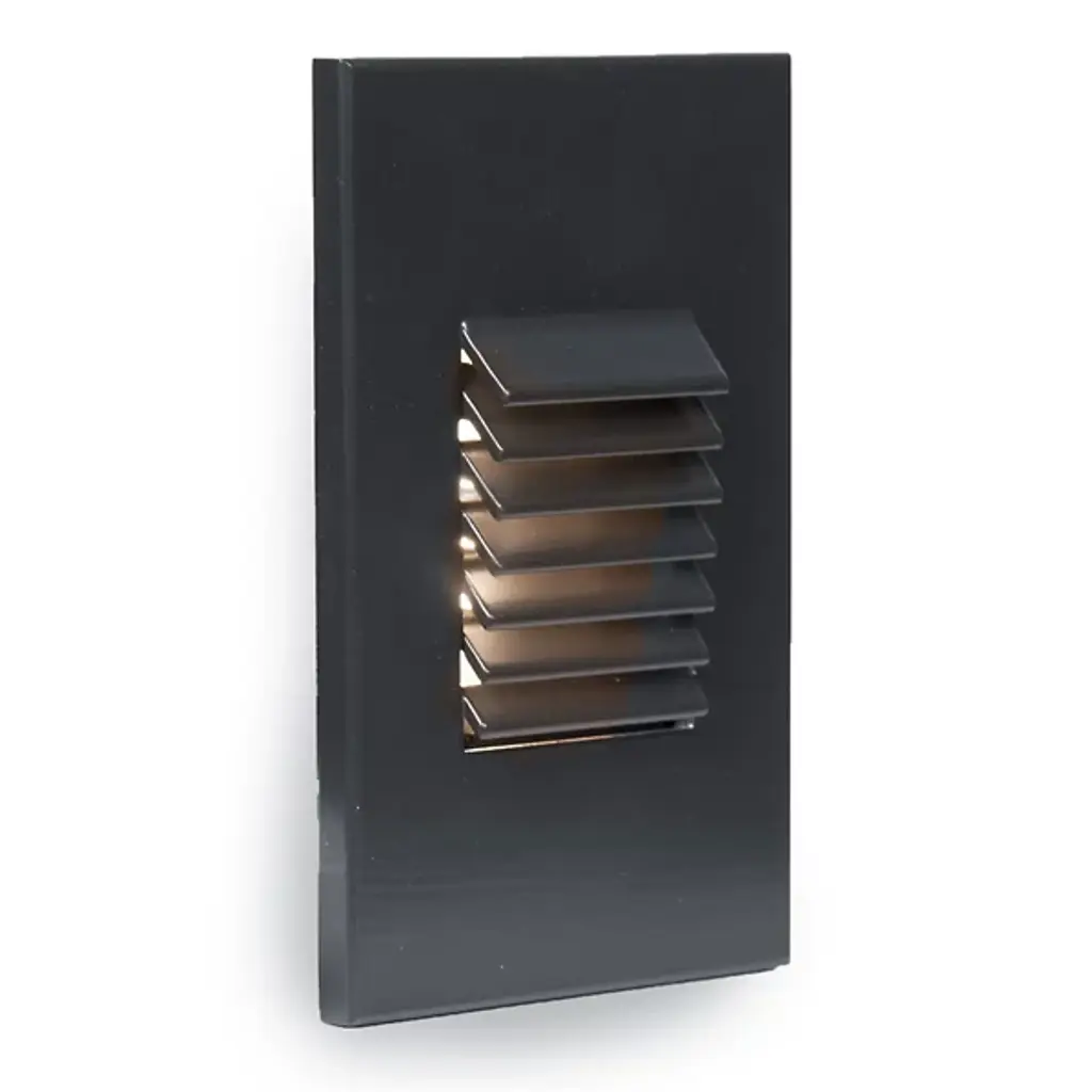 The Vertical Louvered LED Step and Wall Light by WAC Lighting is constructed from durable die-cast aluminum and finished with an abrasion-resistant powder coating that makes it resistant to elements of weather. This rectangular structure features louvered accents that direct the illumination at specific angles. It houses an dimmable, energy-efficient LED light that enables you to customize the light intensity. Magnetized for easy installation and maintenance.
