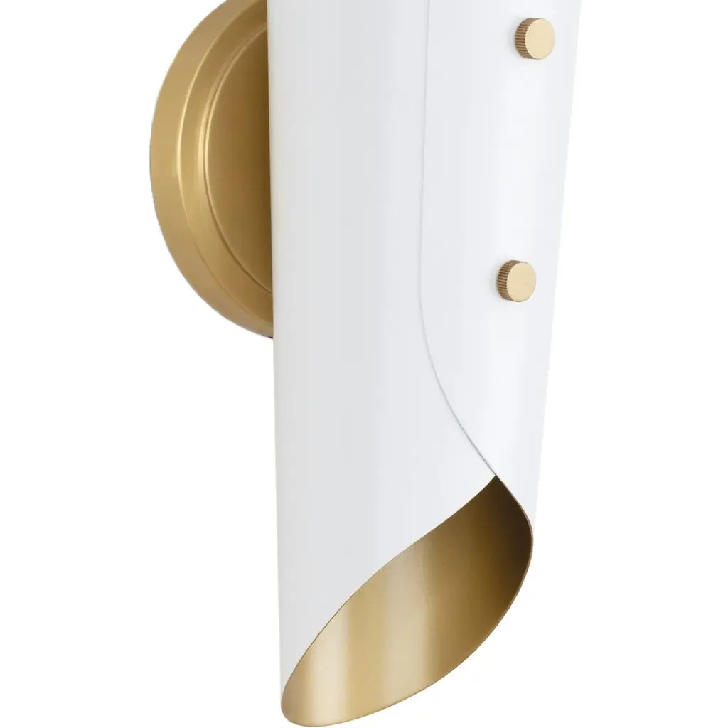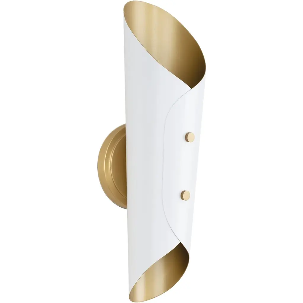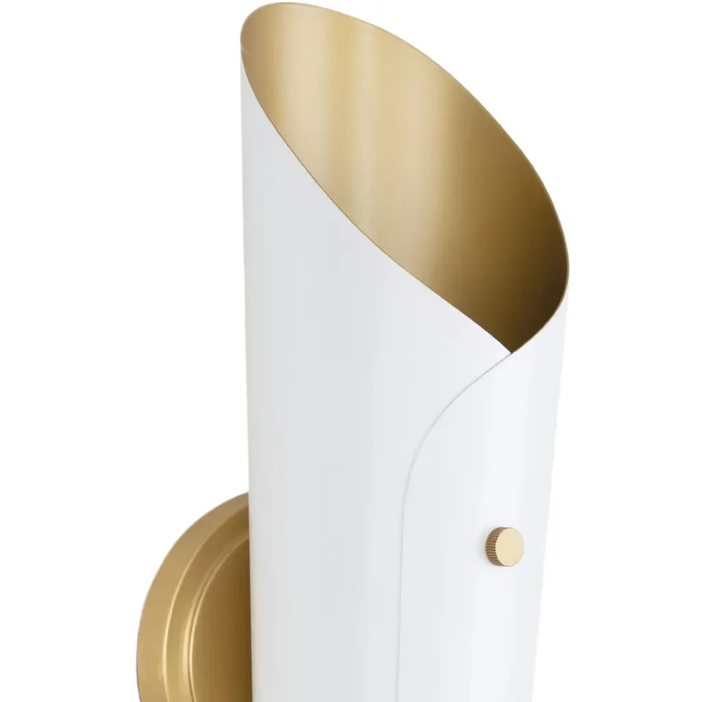 With its conical shape and two-tone finish, the Vest Sconce has clean lines and is buttoned-up, much like a well-tailored tuxedo. The overlapping steel fixture features contrasting interior and details for a distinct mid-century modern vibe.