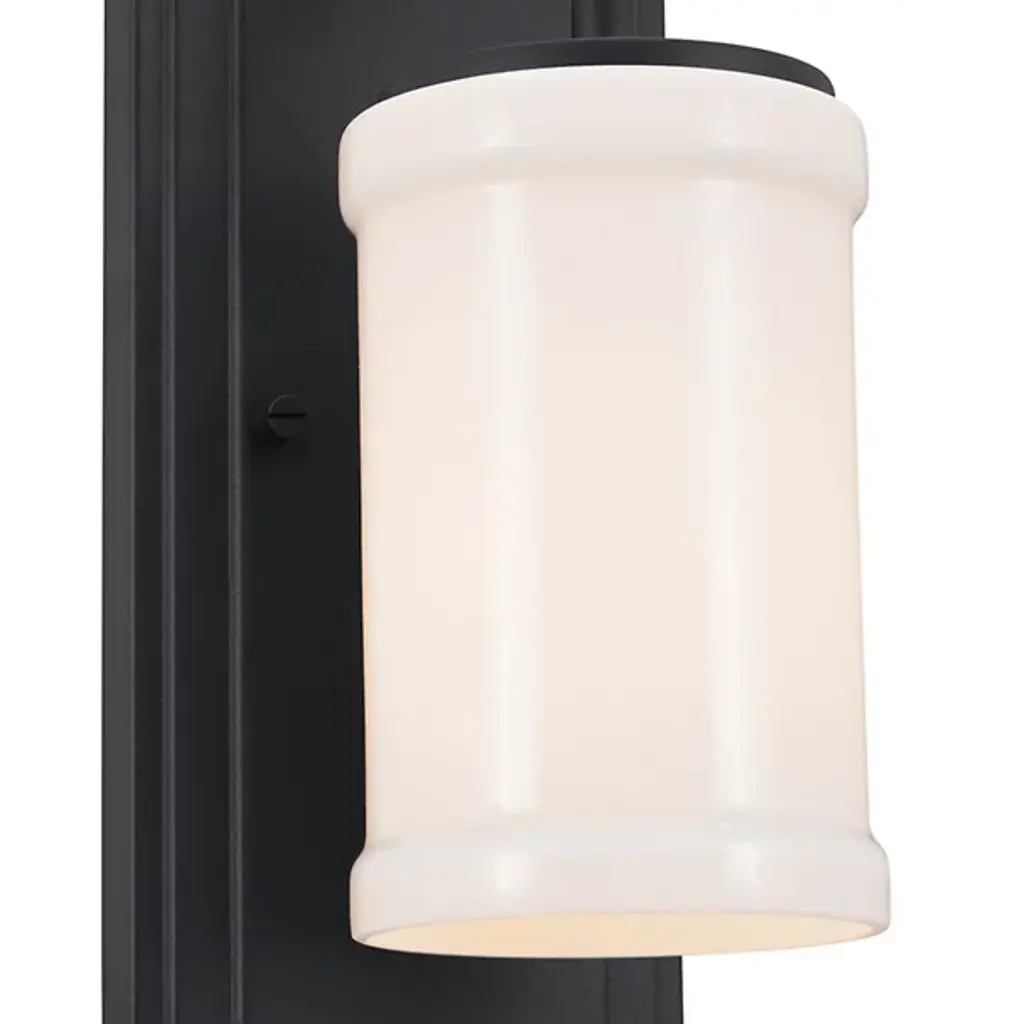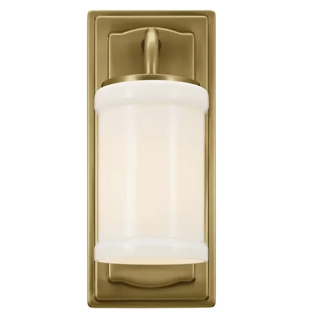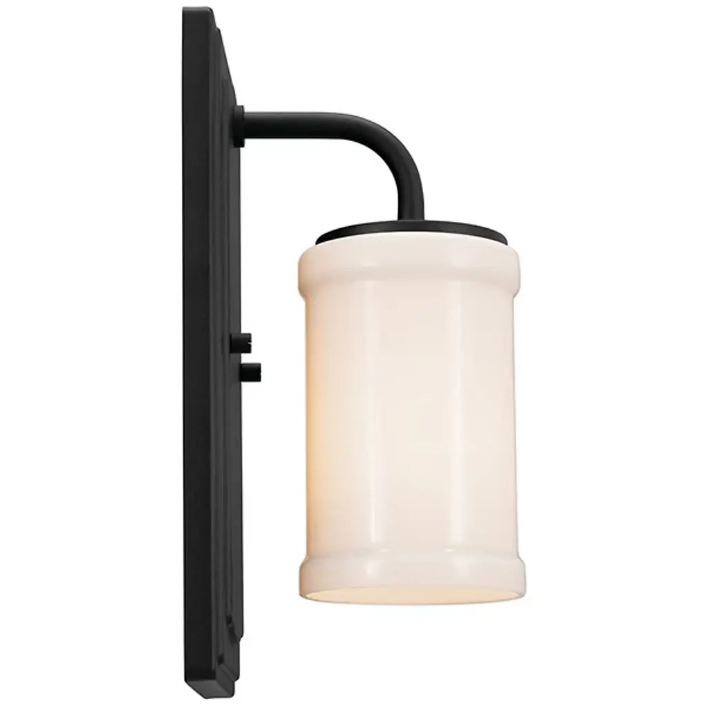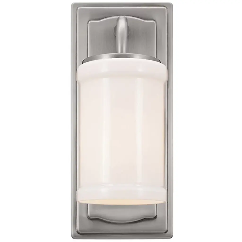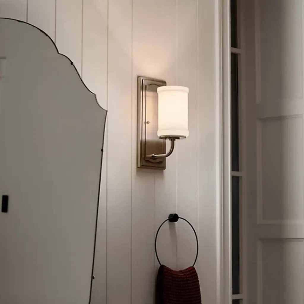 The Vetivene Bath Wall Sconce by Kichler gives your lavatory a look of refinement. Viewers of this fixture will notice the subtle arching details that line the surface of this sconce’s steel backplate. This backplate secures to your wall so that a beautiful shade of opal glass can rest at the end of the sconce’s sloping arm. Inside of the Vetivene’s shade is a halogen bulb that gives your room a vibrant glow.