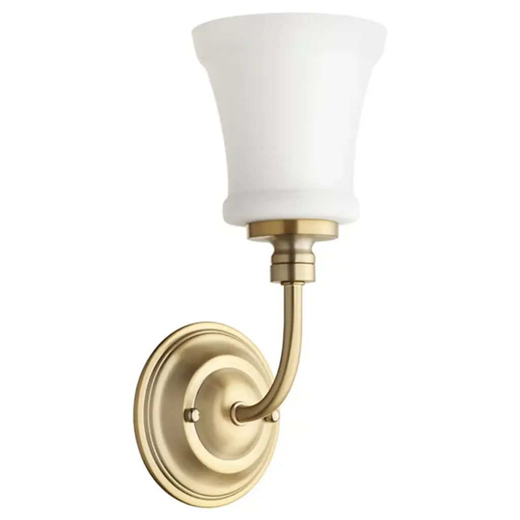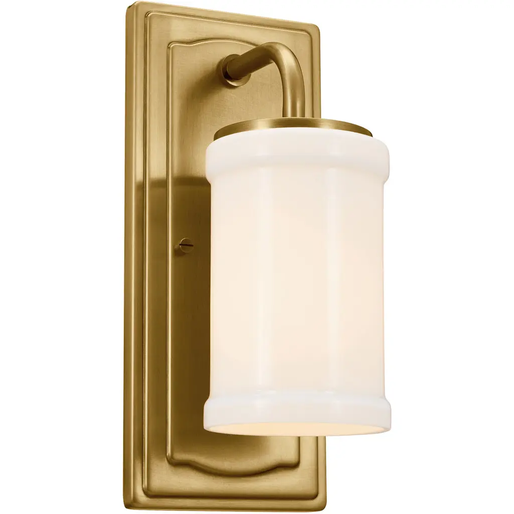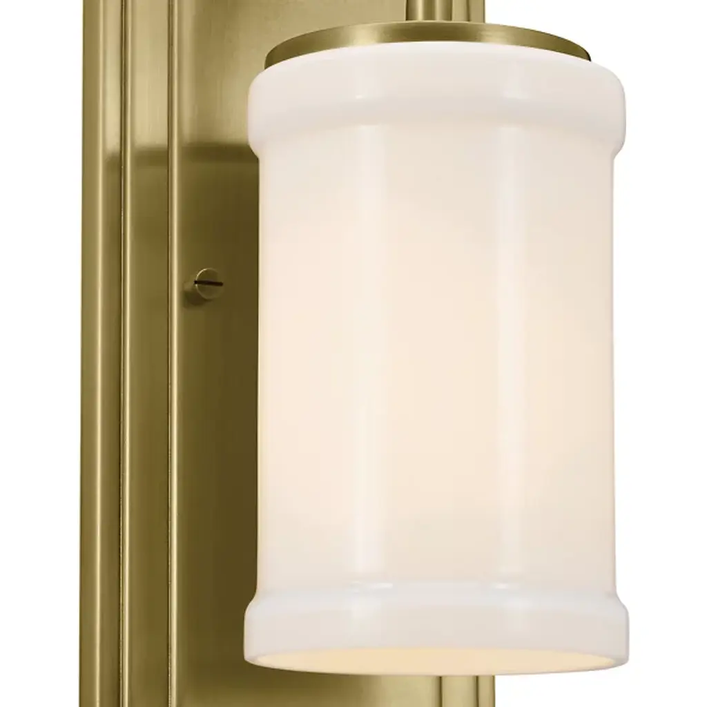 The Vetivene Bath Wall Sconce by Kichler gives your lavatory a look of refinement. Viewers of this fixture will notice the subtle arching details that line the surface of this sconce’s steel backplate. This backplate secures to your wall so that a beautiful shade of opal glass can rest at the end of the sconce’s sloping arm. Inside of the Vetivene’s shade is a halogen bulb that gives your room a vibrant glow.