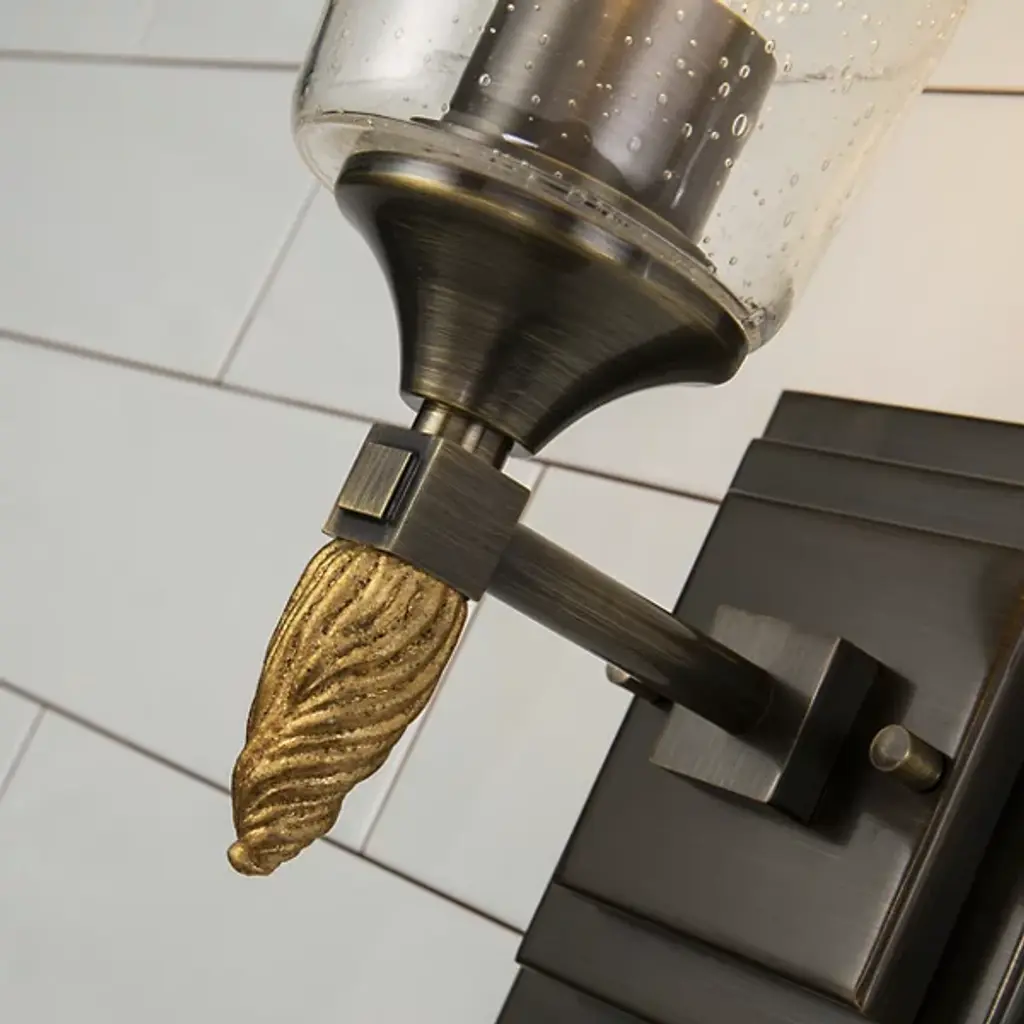 The Vetiver Acorn Finial Wall Sconce by Lucas McKearn brings an ornate design sensibility to your living space. For New Orleanians, the spicy-woodsy scent of Vetiver oil is familiar as well as nostalgic. This sconce creates that feeling of relaxation in your bathroom. This light fixture’s finial will certainly lift the mood. Completed with a clear seeded glass shade.
