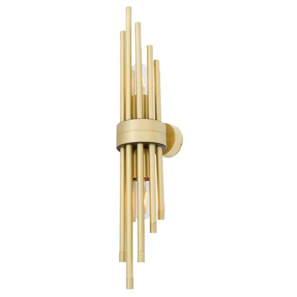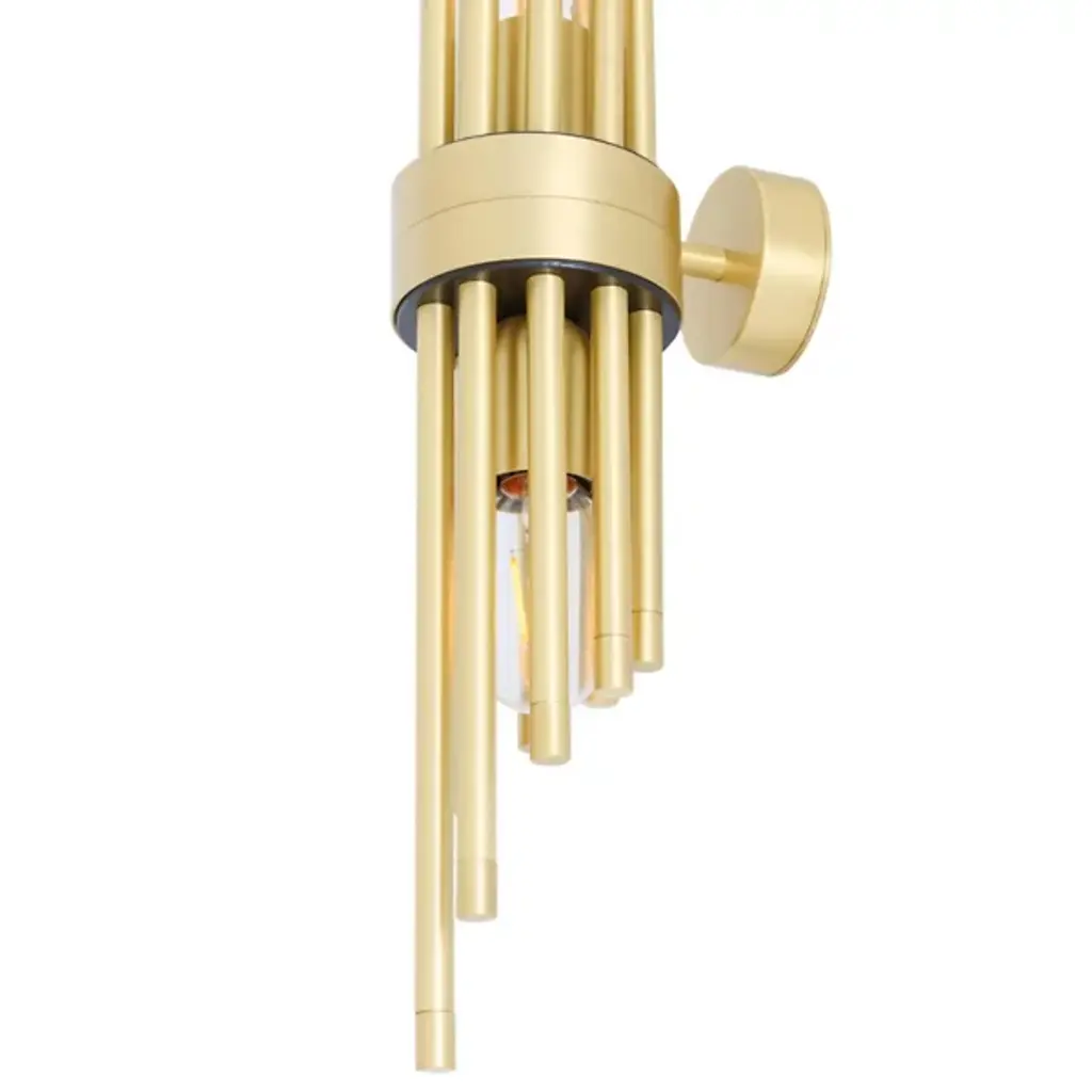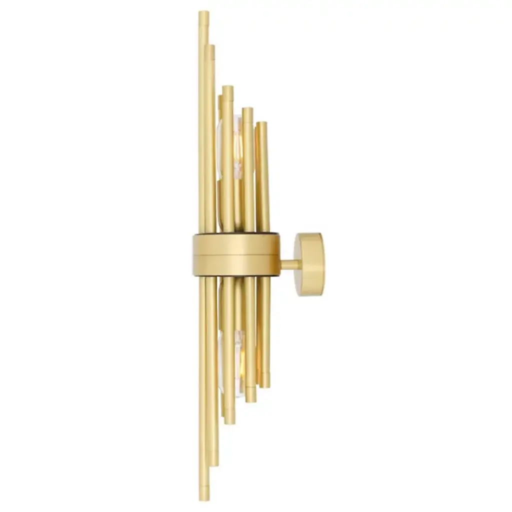 The Victoria Mini Wall Sconce from Mullan Lighting offers a refined, Art Deco-inspired design in a more compact form, perfect for adding structure and elegance to interior spaces. A central hub gathers vertical rods, partially enclosing two light sources to cast a warm, ambient glow. The interplay of layered elements and open space creates depth and sophistication. Ideal for accent lighting in hallways, living areas, or hospitality settings, this sconce brings a sleek, architectural presence to any environment.