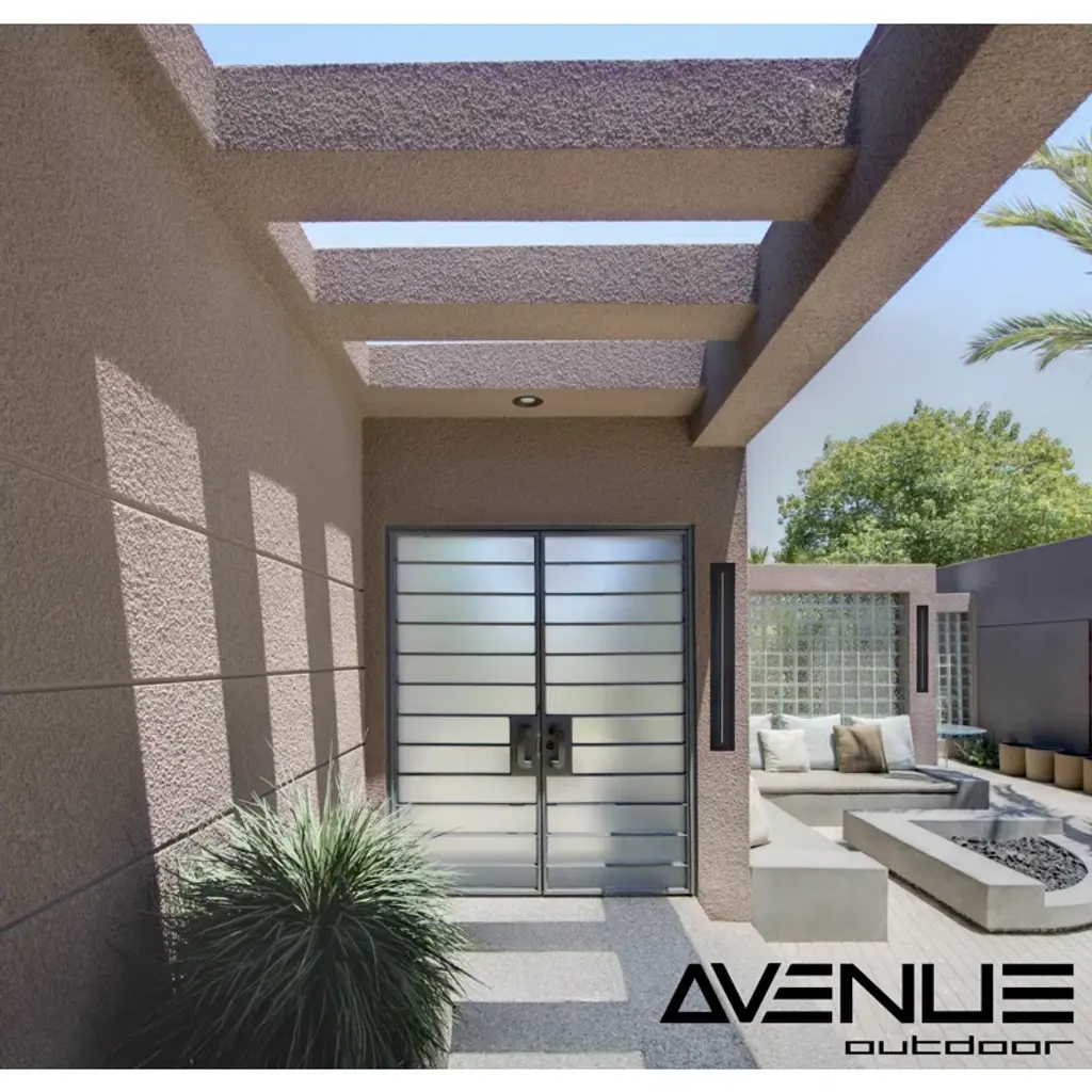 The Maison Outdoor Flush Mount style juxtaposes contemporary lines with the rugged look of hand-hewn stone in a blown glass lens. Choose ledgestone or hammered glass texture in either opal or clear glass.
