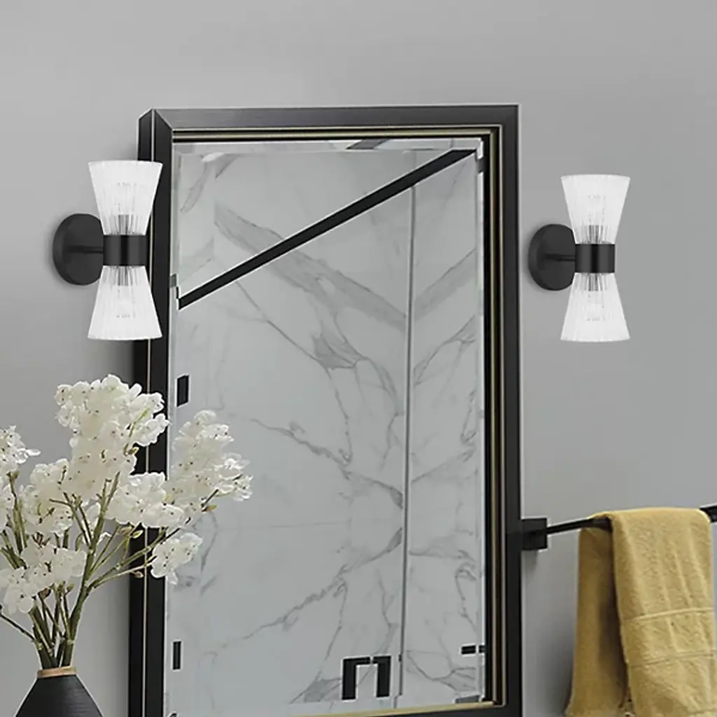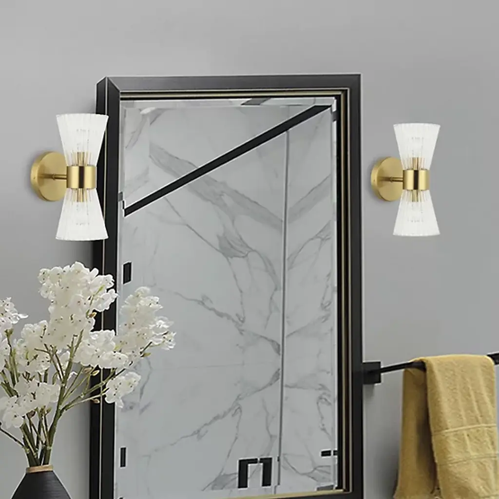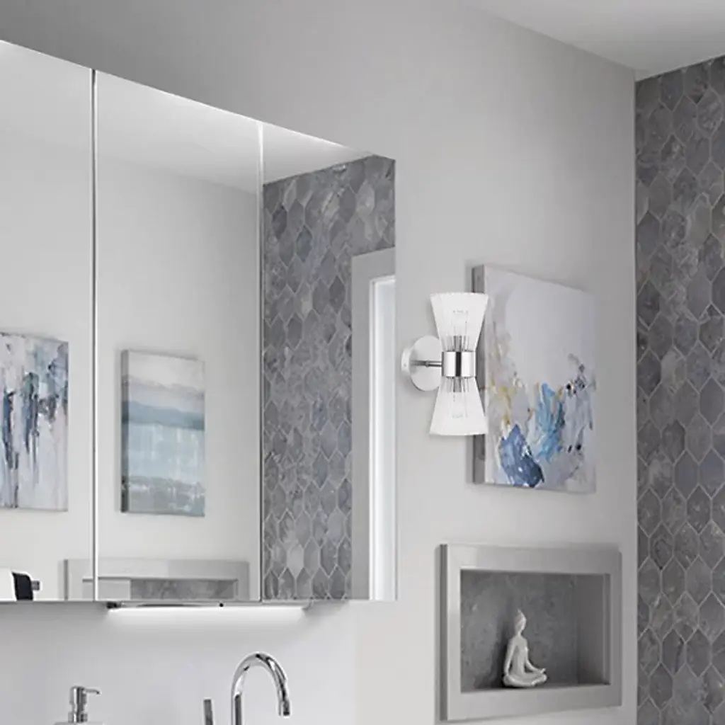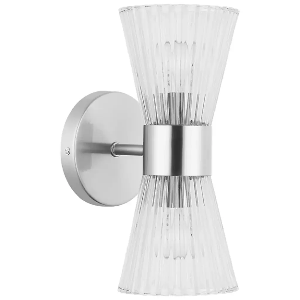 The Vienna 2 Light Cone Wall Sconce from Dainolite is a versatile lighting solution that seamlessly blends with the transitional style of your home decor. Its strong metal body extends to hold a geometric glass shade, adding an element of sophisticated design. Whether you need to brighten your bathroom, spa, or powder room, this Wall Sconce offers a unique lighting atmosphere. The combination of glass and metal creates an exquisite balance, making it a top choice for both commercial or residential settings.