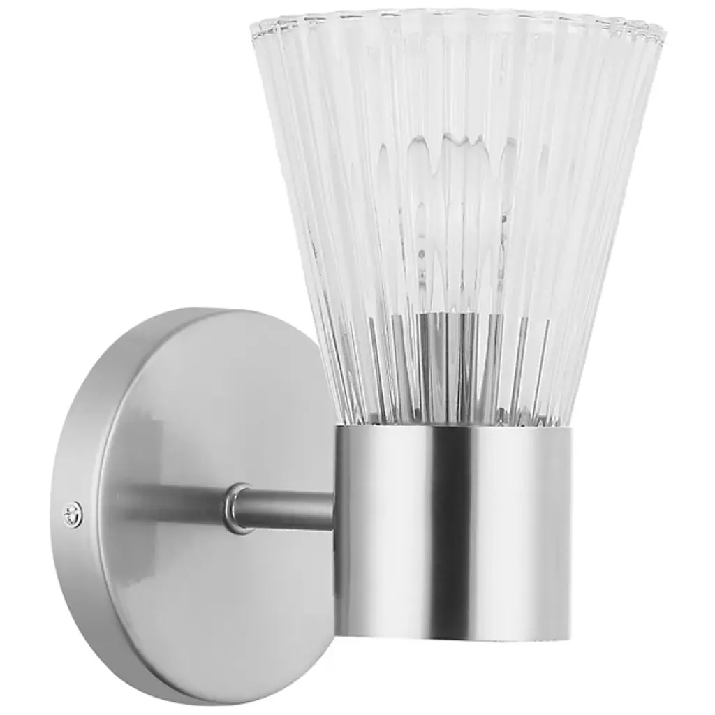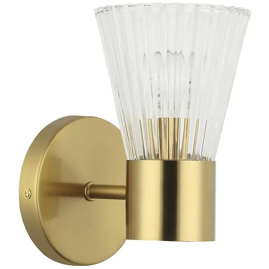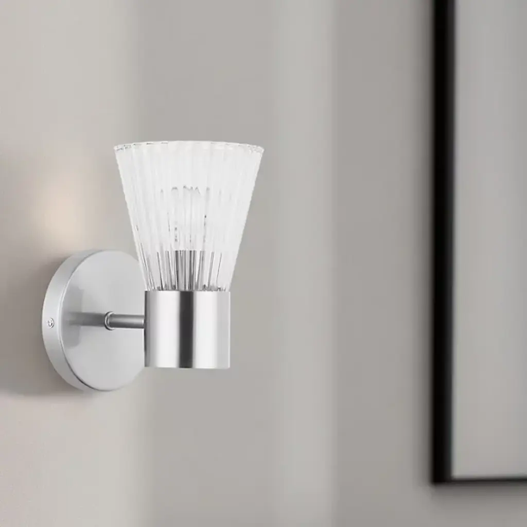 With the Vienna Wall Sconce by Dainolite, you can create a Transitional ambiance in your preferred spaces, whether that be the bathroom, powder room, or even a spa. Made with a combination of robust metal and fine glass, this fixture's careful detail and tasteful design are a nod to the refined aesthetics of the Vienna series. The cone-shaped shade is a unique feature that brings an element of visual interest.