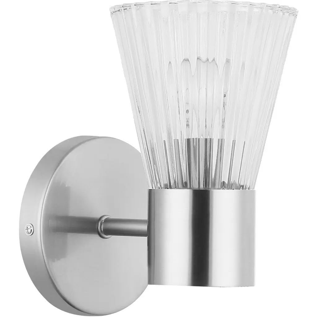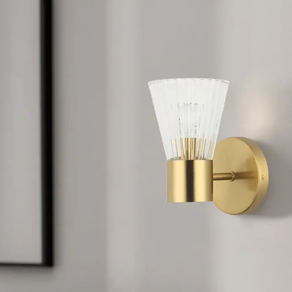 With the Vienna Wall Sconce by Dainolite, you can create a Transitional ambiance in your preferred spaces, whether that be the bathroom, powder room, or even a spa. Made with a combination of robust metal and fine glass, this fixture's careful detail and tasteful design are a nod to the refined aesthetics of the Vienna series. The cone-shaped shade is a unique feature that brings an element of visual interest.