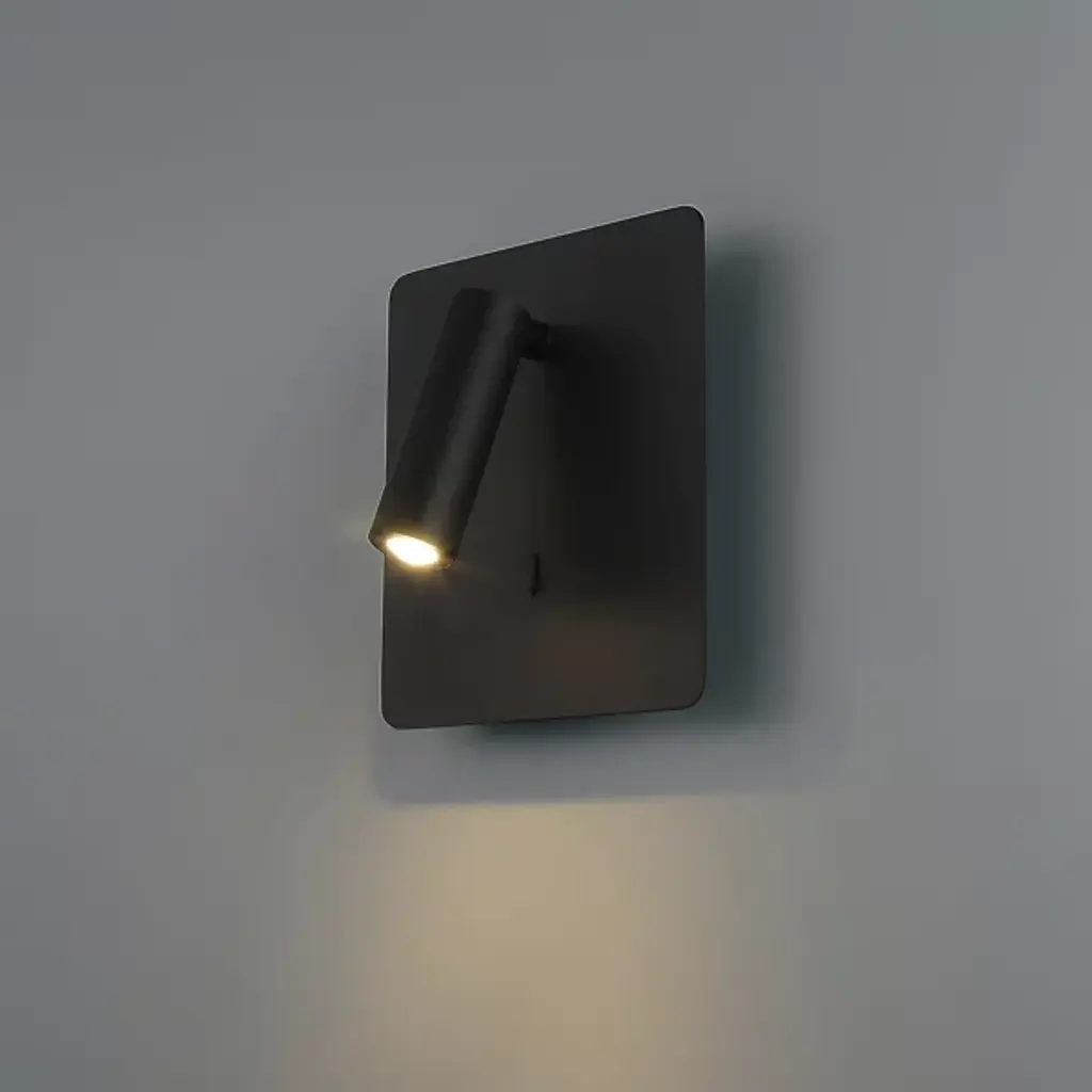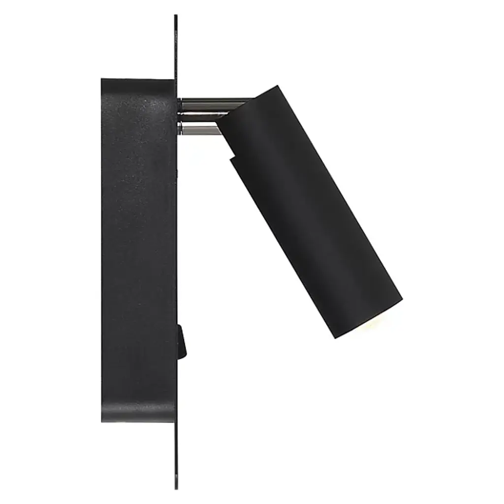 Reading light, but keep it clutter-free. The Villa LED Wall Sconce by Access Lighting is a sleek, wall-mounted design that leaves nightstands and other surfaces free for books, glassware and other important items. It starts with a soft-cornered, rectangular steel wall plate, with an adjustable spotlight that provides bright, focused LED light for reading and other tasks. For added convenience, an on/off switch is in easy reach on the wall plate. Suitable for hardwire or plug-in installations.