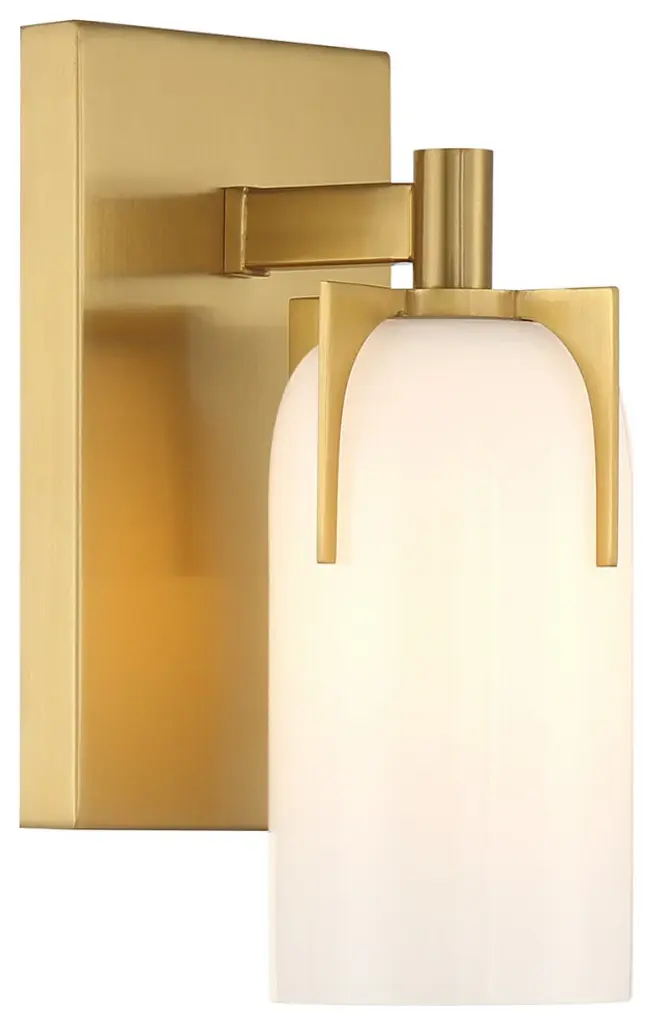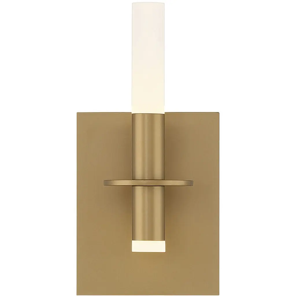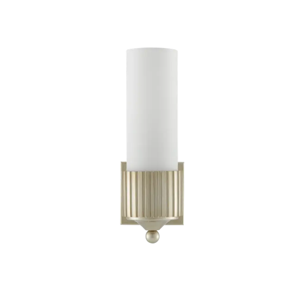 A beautifully textured, tapered rod poetically pierces through the cylindrical cloud glass shade of the Vineland sconce. Featuring hand-carved horizontal grooves, this metallic rod adds a dynamic contrast to the minimalist simplicity of the shade. Finished in Vintage Gold Leaf, Vineland brings a sense of contemporary sophistication to any small space.