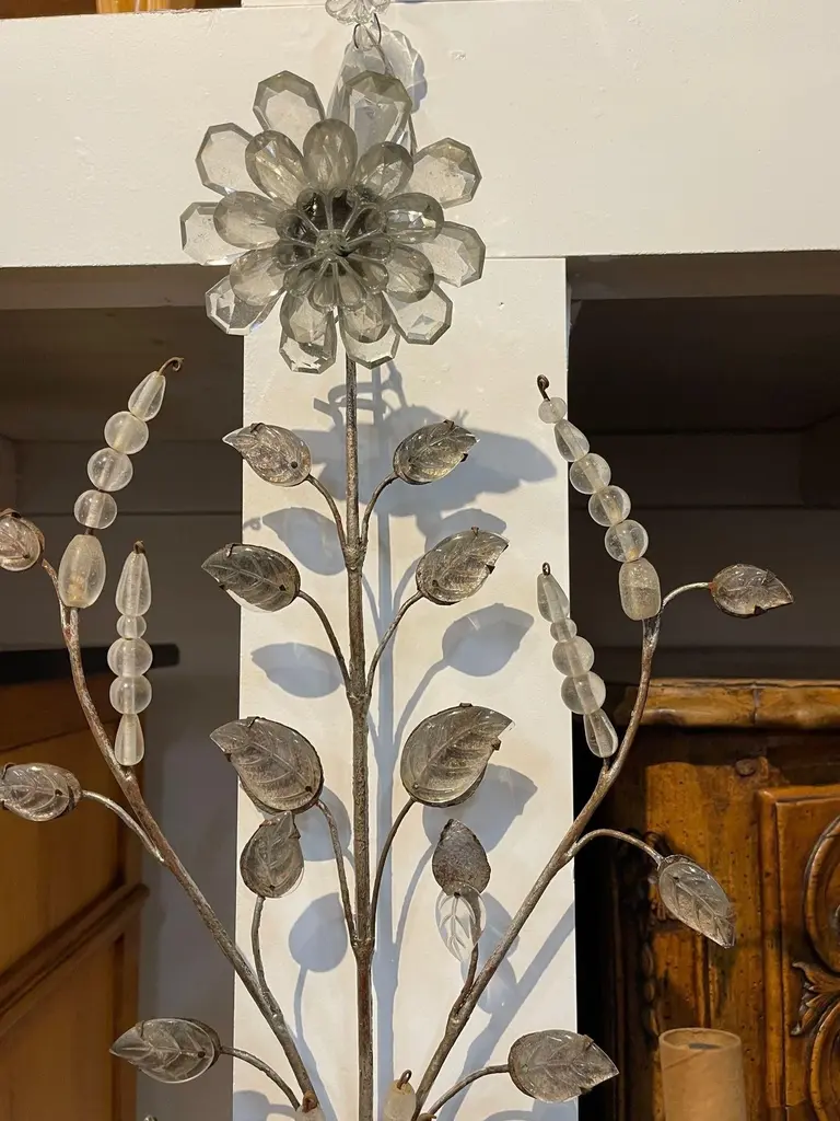 Vintage French Bagues Crystal And Silver Leaf Sconces - A Pair