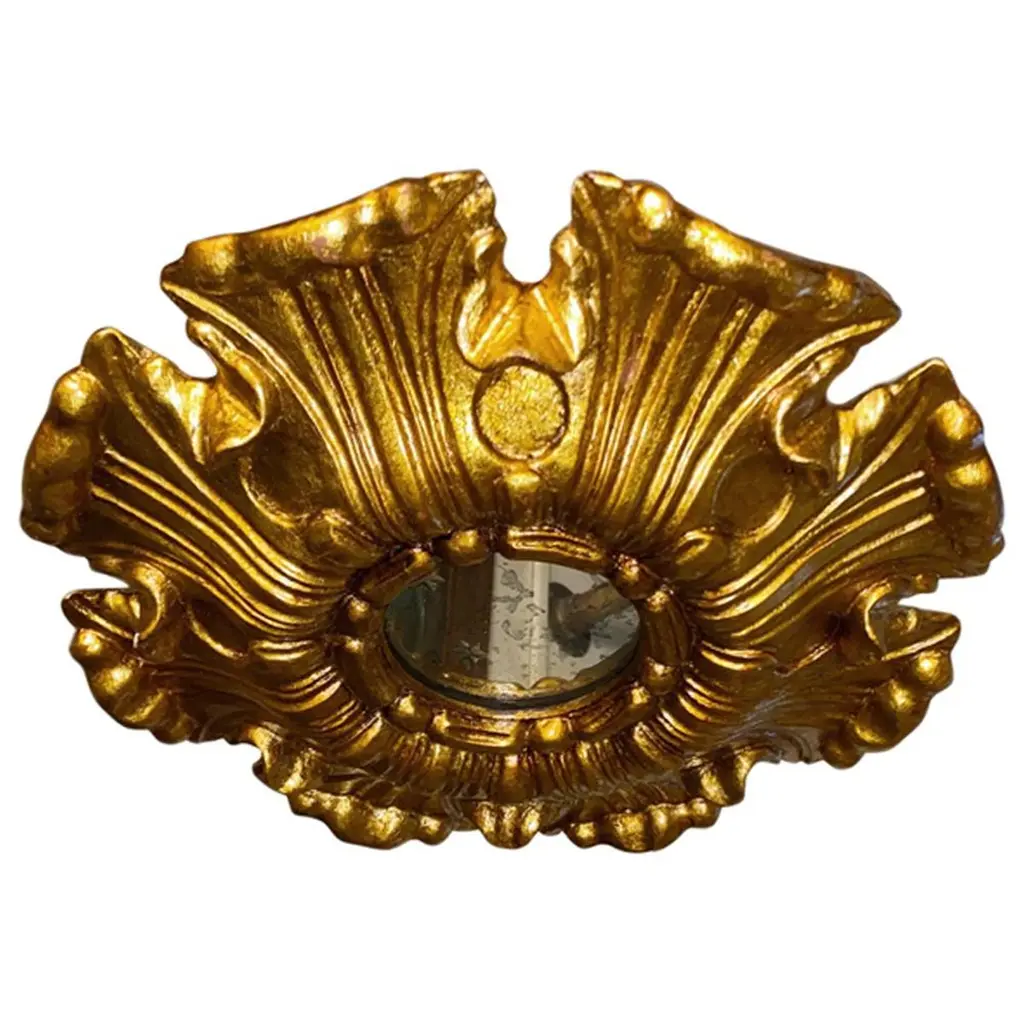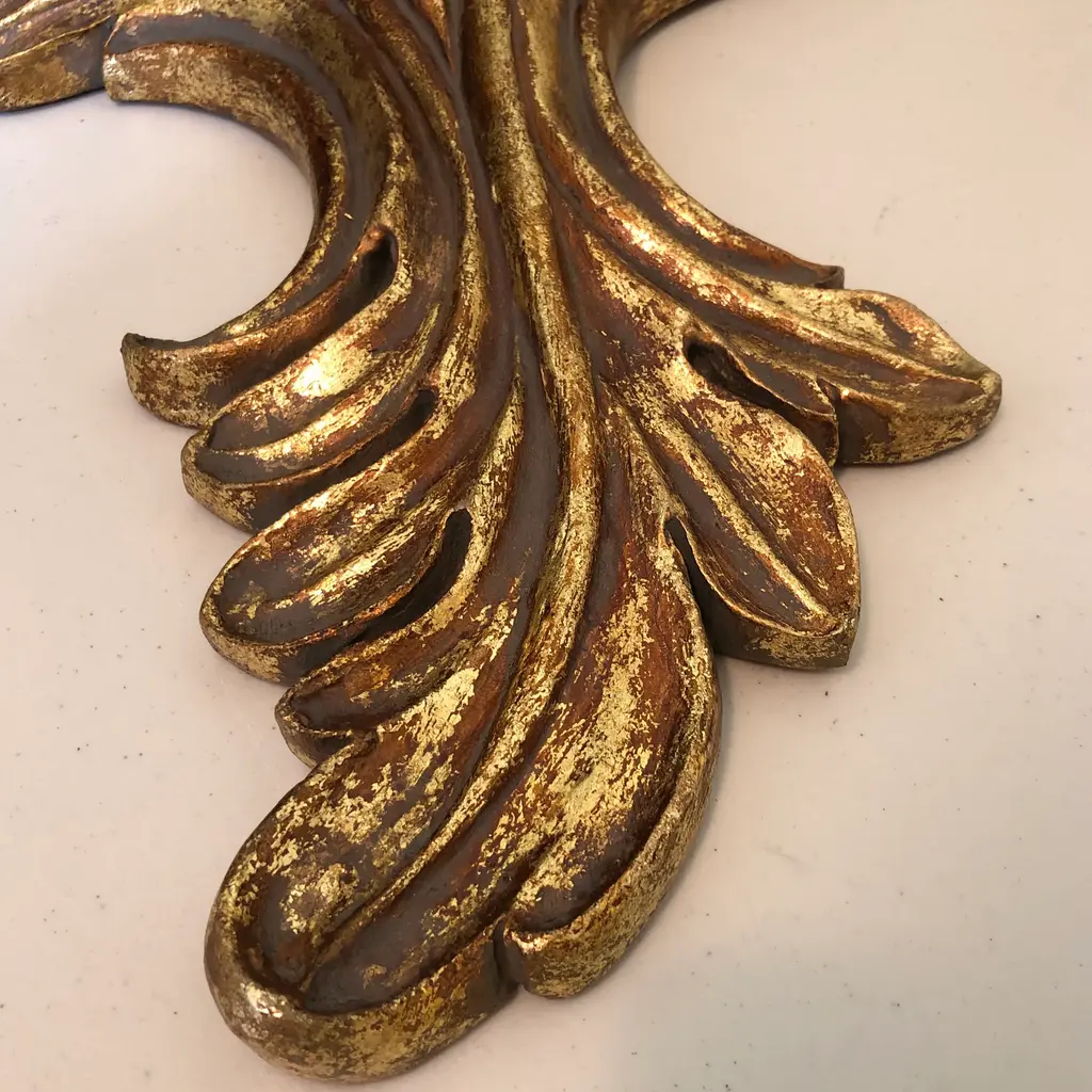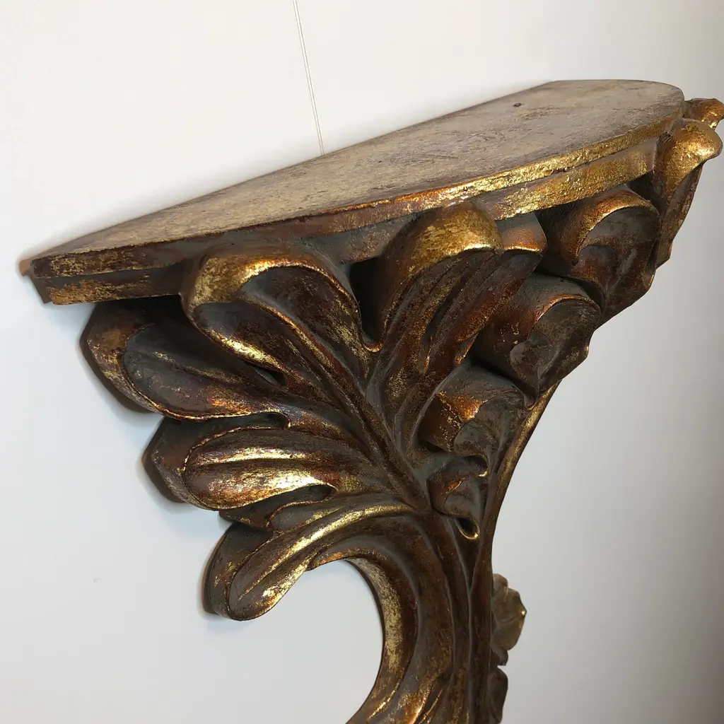 Dramatic wall sconce shelf. Gold gilt fig leaf motif Vintage: 1970’s Dimensions 17” W x 6.5” D x 20.25” H Weight - 9 lbs (2 available upon request @ $400)