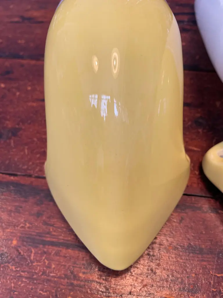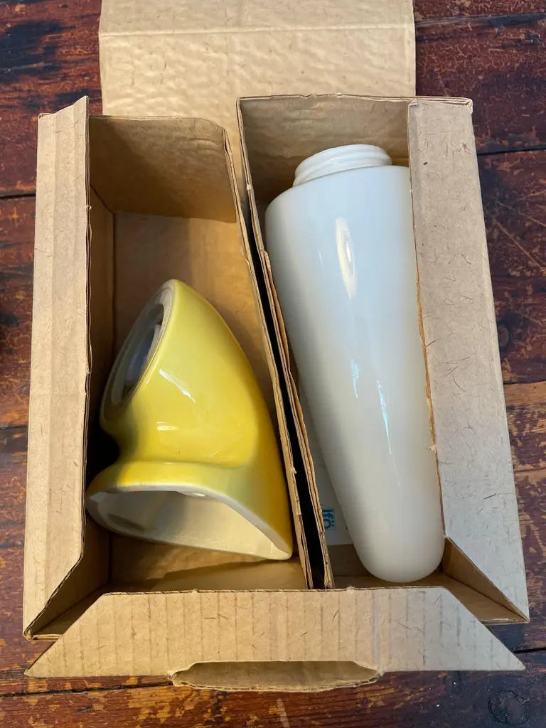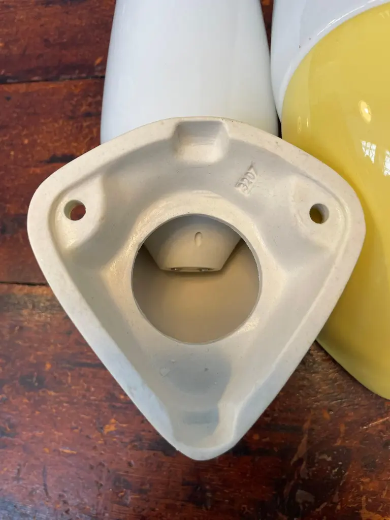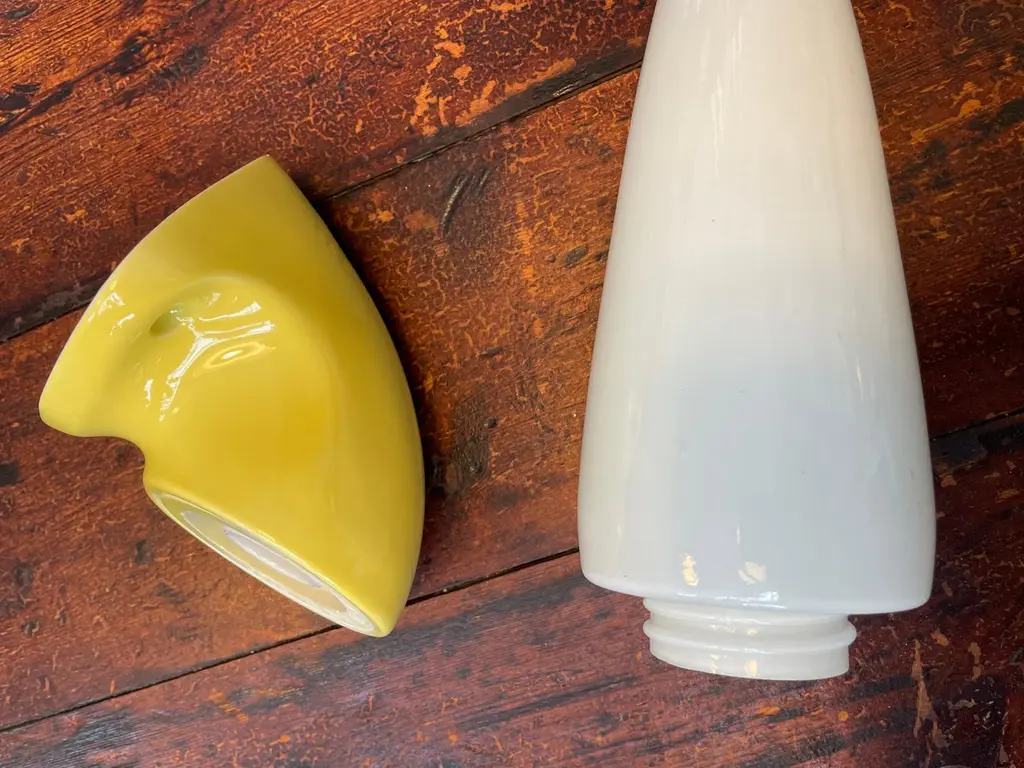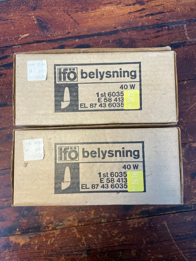 Vintage Ifö of Sweden ceramic bathroom lamps from the 1960s in yellow and with the original boxes.Model 6035. Designed by Sigvard Bernadotte. Opaline glass shades. Ceramic bulb holders for an E14 bulbLamps can be used as up or down lights.In great condition and ready to use.These lamps are handmade hand glazed and hand blown so there will for example be small imperfections in the glass shades such as bubbles or slight imperfections in the glazing such as a slight variation in color also the shade on the glazing can also vary slightly from lamp to lamp.Just one of the great things about handmade items. Will be fitted with a 20cm length of cord. These are a class 2 lamps with no metal parts so no need for grounding Price per pair. Responsible worldwide shipping. These lamps are made for a wet environment but were made before IP rating began in 1976 but they are the equivalent of an IP44 Sigvard Oscar Fredrik Bernadotte, Prince Bernadotte, Count of Wisborg, was a Swedish prince and Industrial designer. He was the second son of King Gustav VI Adolf of Sweden and his first wife, Margaret, Duchess of Scania, a granddaughter of Britain's Queen Victoria.