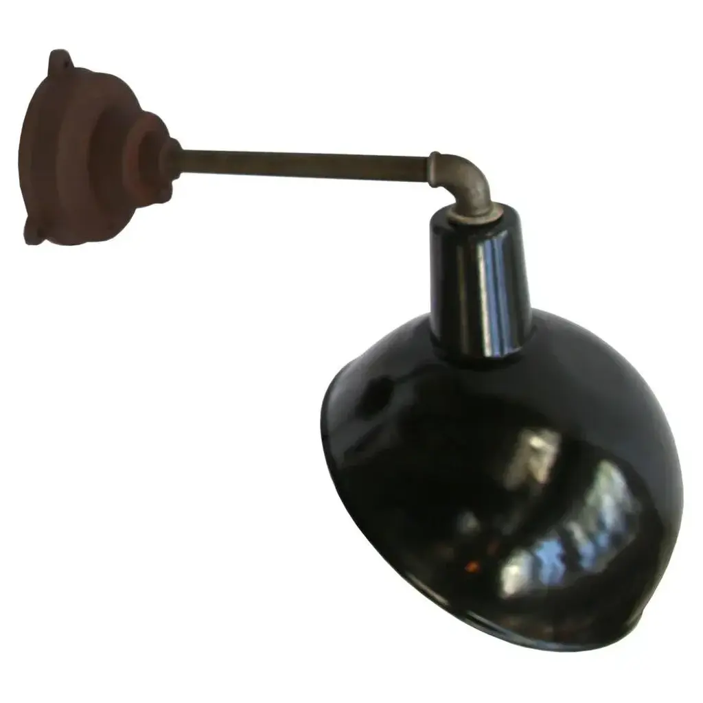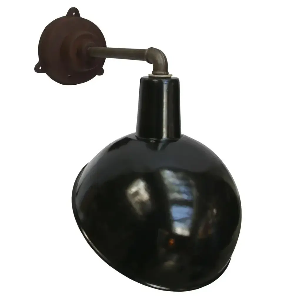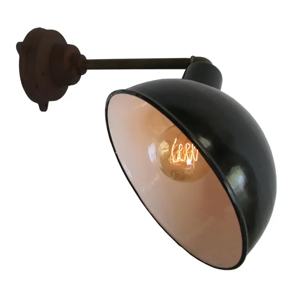 Factory wall light and black enamel, white interior. diameter cast iron wall piece: 12 cm, 3 holes to secure. e26 / e27. All our lights are rewired and bulb holders e27 / e26 are replaced for new ce certified (220 volt) or ul listed (110 volt) parts. Excluding light bulb. up to 250v (europe/uk standard).the wiring of this item may be original and might need replacement, if not specified otherwise.