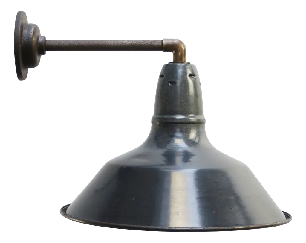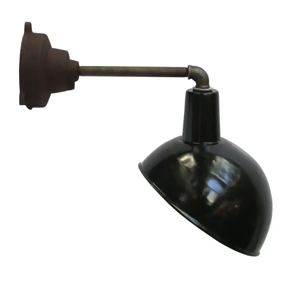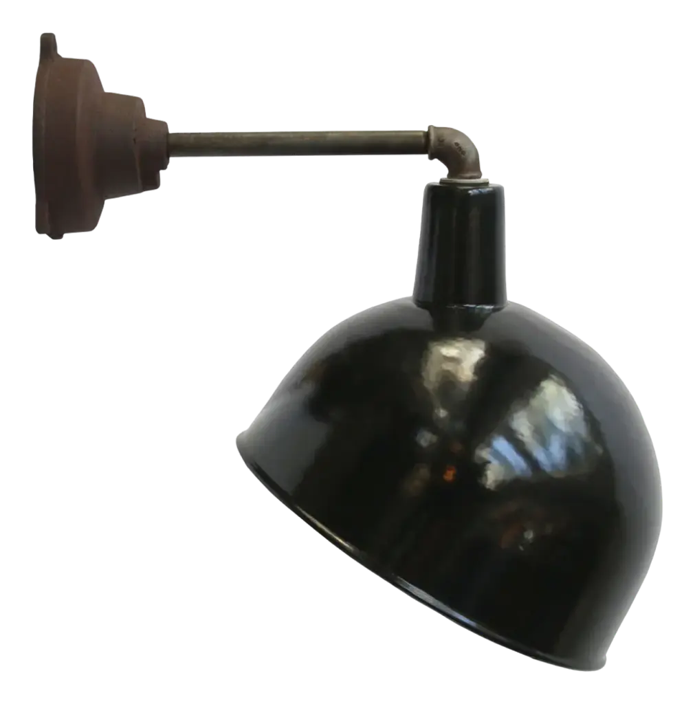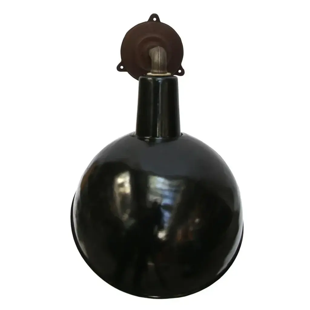 Factory wall light and black enamel, white interior. diameter cast iron wall piece: 12 cm, 3 holes to secure. e26 / e27. All our lights are rewired and bulb holders e27 / e26 are replaced for new ce certified (220 volt) or ul listed (110 volt) parts. Excluding light bulb. up to 250v (europe/uk standard).the wiring of this item may be original and might need replacement, if not specified otherwise.