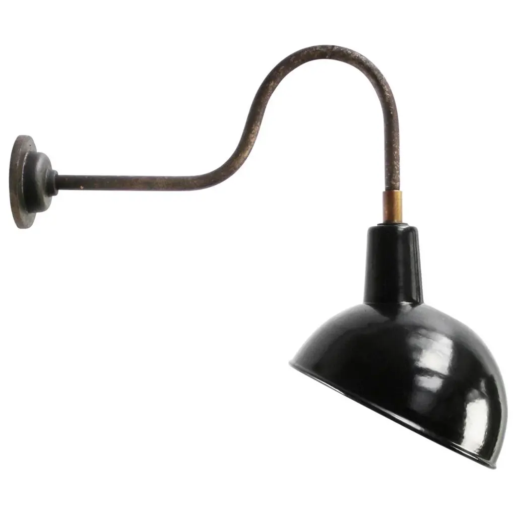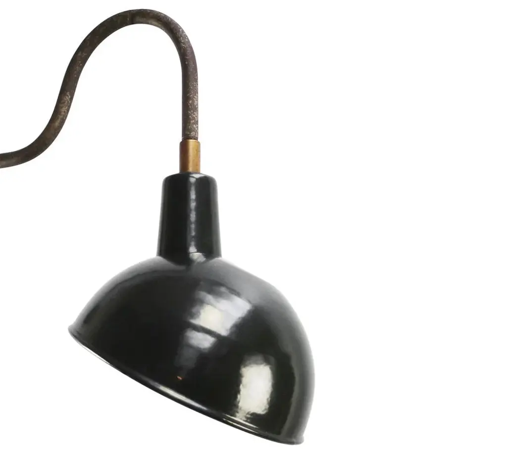 Black enamel industrial wall light with white interior. diameter cast iron wall mount: 10.5 cm / 4” cm, 2 holes to secure. all our lights are rewired and bulb holders e27 / e26 are replaced for new ce certified (220 volt) or ul listed (110 volt) parts, excluding light bulb e27 / e26 up to 250v (europe/uk standard).the wiring of this item may be original and might need replacement, if not specified otherwise.
