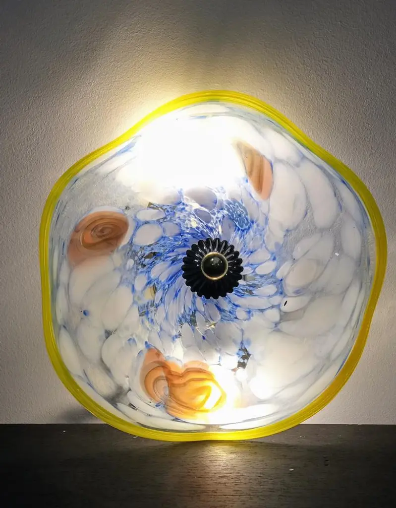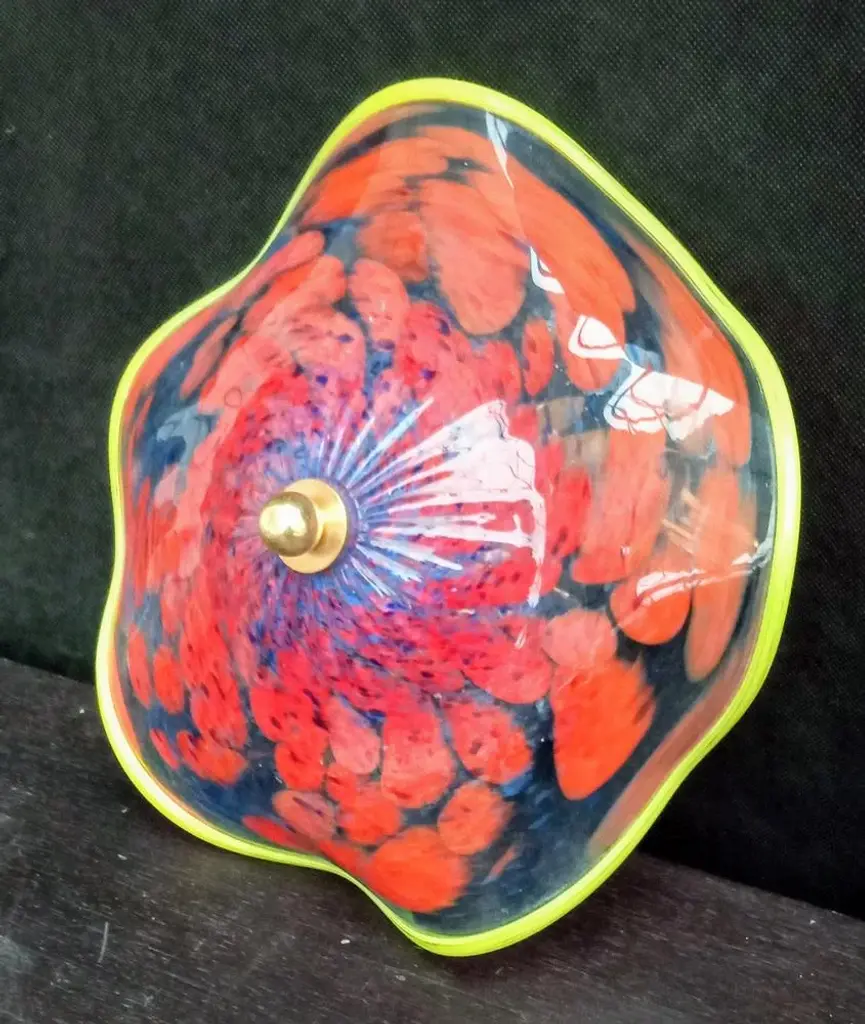 Hand and hand -worked Murano glass applique, glass with various colors by Murrine and more. Golden metal structure with 2 E14 lamp holders suitable for LED or filament bulbs. Each piece is a unique object. European Plug (up to 250V).The wiring of this item may be original and might need replacement, if not specified otherwise.