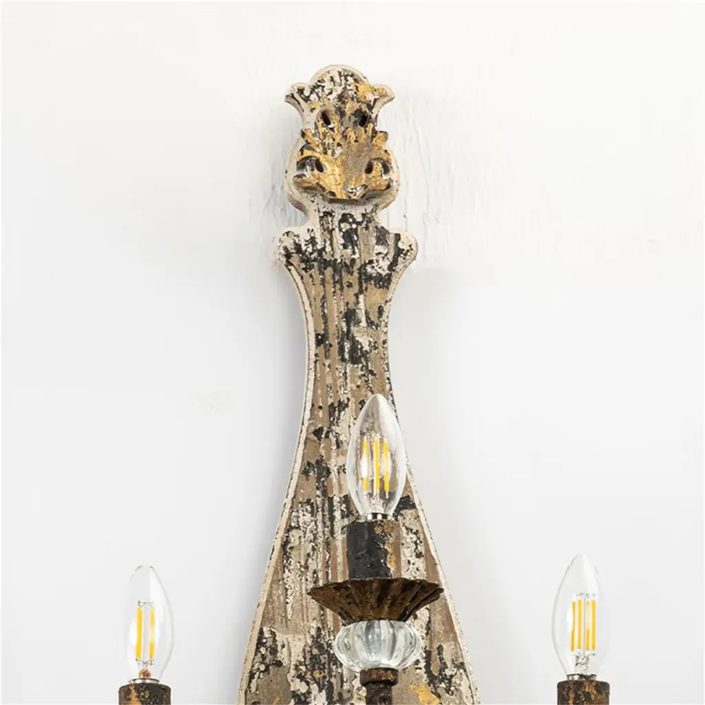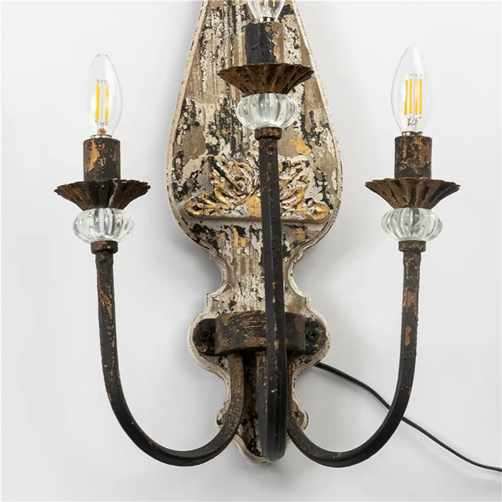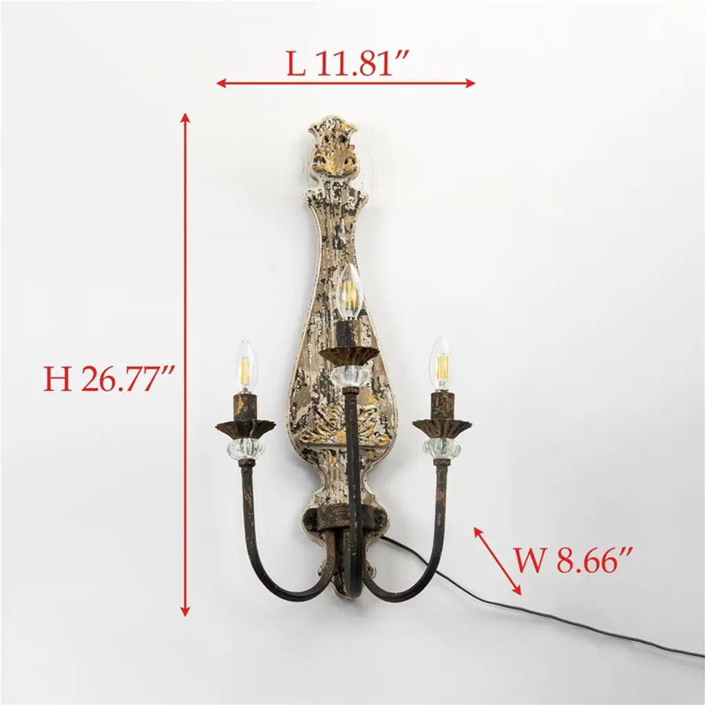 Vintage Wall Sconce With Distressed Finish And Three Light Bulbs, Elegant Rustic Home Lighting Fixture, 1Pc