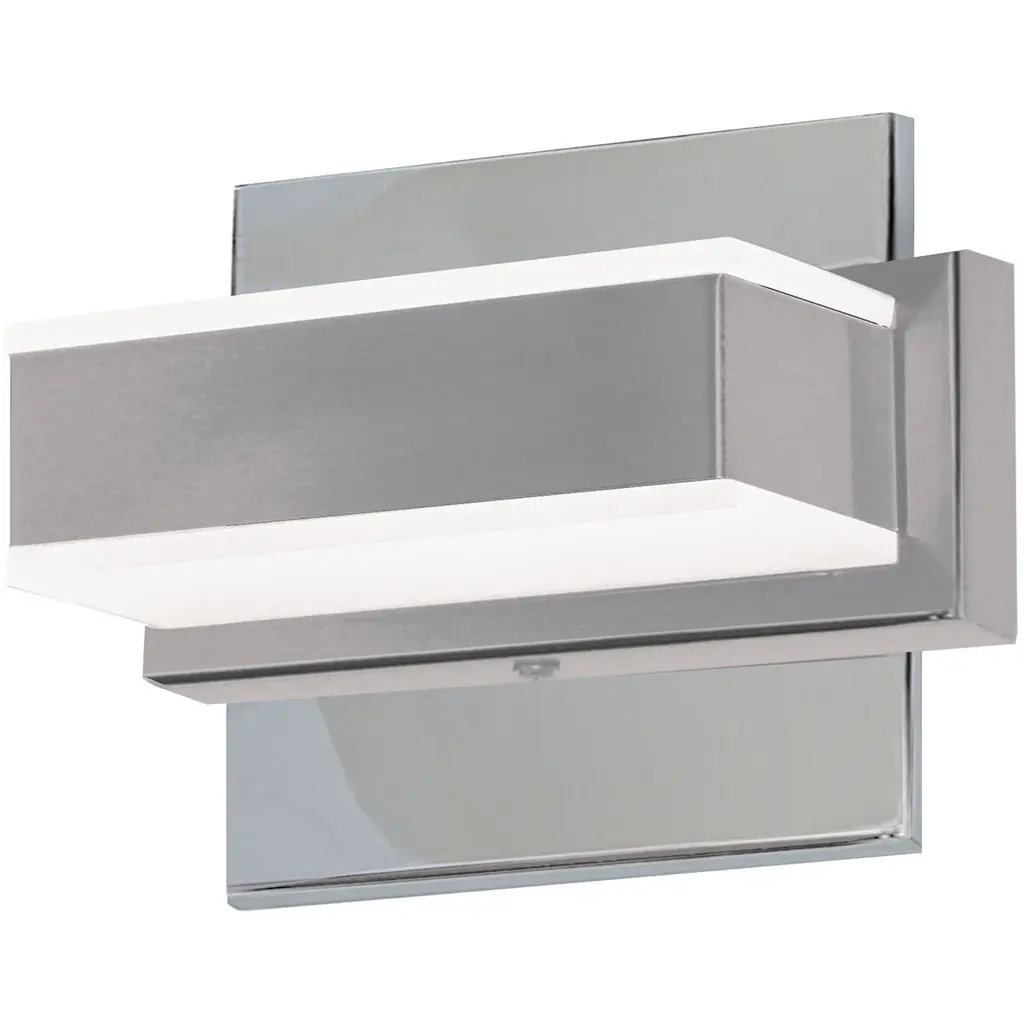 A clean, modern piece with subtle beauty, the Viola LED Wall Sconce from Dainolite expresses an even layer of light as it adorns the space. A square backplate made of smooth metal mounts a matching rectangular extension oriented across its surface. Made of frosted acrylic and containing an integrated LED, this piece is gently adorned with the metal material for a beautiful accent. Able to be mounted in either a horizontal or vertical orientation, this versatile piece can be placed in a range of locations in the home, ensuring the warm and even light from the LED is never far away.