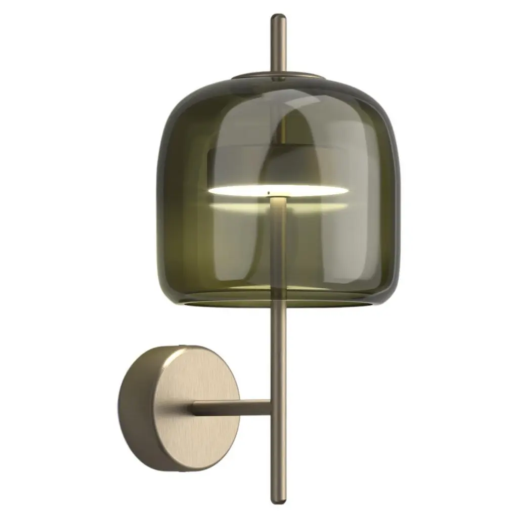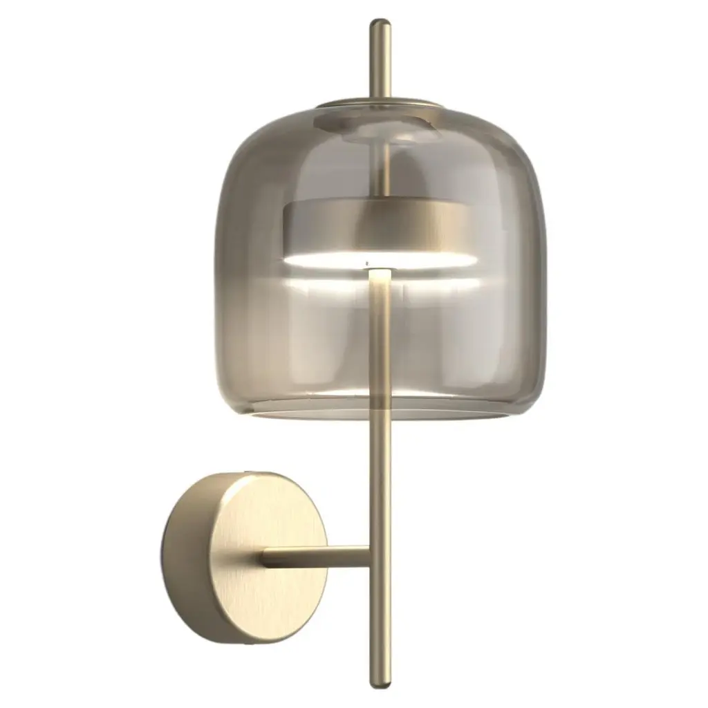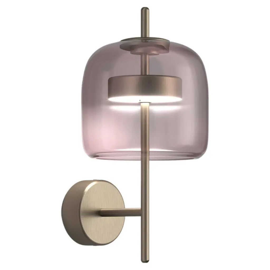 The elegant and delicate look of the blown glass finds a new dimension in Jube. Two glass units placed side by side, so perfectly assembled, that they look like a unique piece. A sinuous lamp, with tone-on-tone colours that give it a precious, vintage mood.Specifications:Material: GlassLight source: LED L2214 ULNo of bulbs: 1x8.5W L2214 UL (24V)Lumen: 1200 lmKelvin: 2700 KDimmer: DIM 2Year: 2017Glass finish: Burned Earth TransparentFrame finish: Matt Gold 2Dimensions: 18 W x 21 D x 36 H cmAvailable in other glass finish options: Light Amethyst Transparent, Crystal Transparent, Smoky Transparent, Old Green TransparentAvailable in other frame finish option: Matt steelAvailable in other light source options: LED L2314 UL - $ 918, LED L3214 UL - $ 918, LED L3314 UL - $ 918Available in other kelvin option: 3000 KAvailable in other dimmer option: DIM 3Please inquire about customization options.