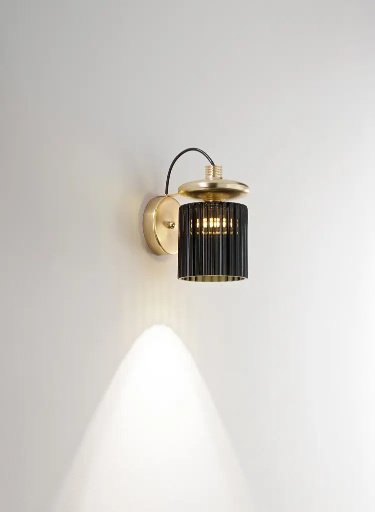 The “technicity” of the metal element combined with the blown glass diffuser gives Tread an “industrial” style. An object reminiscent of vintage electrical equipment for its particular shape, in which the finned heat sink, combined with blown glass, becomes a distinctive element. Tread creates an avantgarde and stylish atmosphere combing crystal, smoke, burned earth and old green glass with copper, gold and bronze matt finishes. Specifications:Light Source: LEDNo of Bulbs: 8W 550 Lumens 3000 KDimmer: DIM 2Frame Finish: Matt Gold 3.