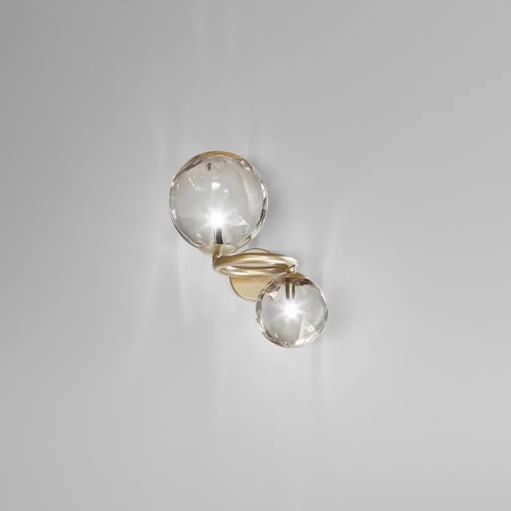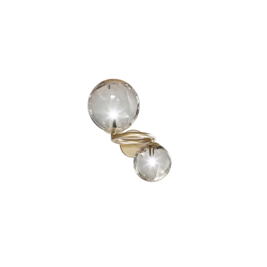 The distinctive feature of this model from the Puppet Ring collection are the rings with increasing diameter. They can be combined in different sequences to form the framework on which the precious glass spheres in three different sizes are placed, blending with the structure thanks to a preformation inside the blown glass. Aesthetically light and elegant, Puppet Ring ethereally combines crystal, smoky, amber and shaded white glass with gold and black matt nickel finishes.Specifications:Material: GlassLight source: G9 ULNo of bulbs: 2x60W G9 UL (120V/60HZ)Dimmer: DIM 1Year: 2019Glass finish: Smoky TransparentFrame finish: Matt Gold 3Dimensions: 22 W x 27 D x 44 H cmAvailable in other glass finish options: Amber Transparent, White Shaded, Crystal TransparentAvailable in other frame finish option: Matt black nickelPlease inquire about customization options.